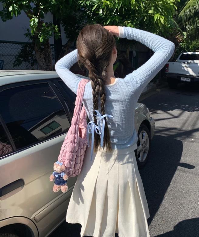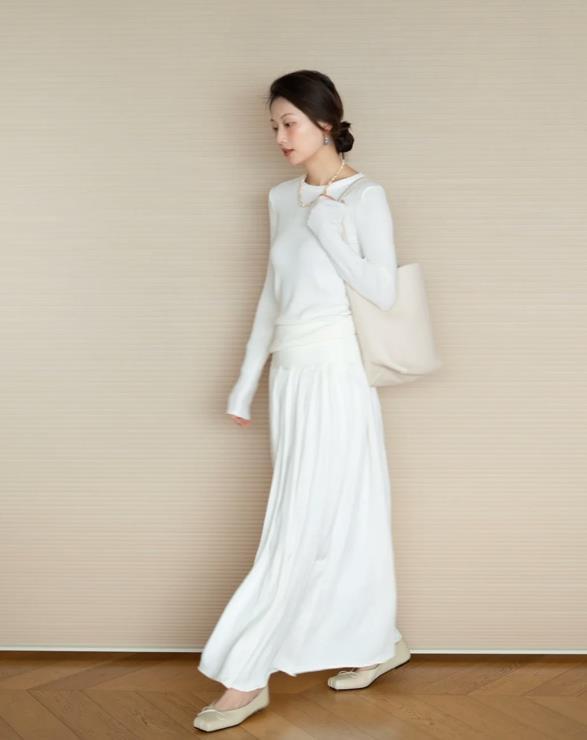 無法拒絕這種自帶溫柔和氣質的穿搭,當柔軟的針織遇上乾淨的白色,是誰都無法拒絕的溫柔和優雅。
