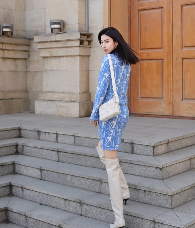 在秋冬看膩了深色系,到了春天,就要爲自己入手一些亮色系的單品,藍白的配色看着就莫名喜歡。針織裙套裝,喜歡穿裙子的姐妹可不能錯過,搭配一雙長靴,立馬氣場兩米,天氣再熱點的話,配雙小白鞋也會很好看。