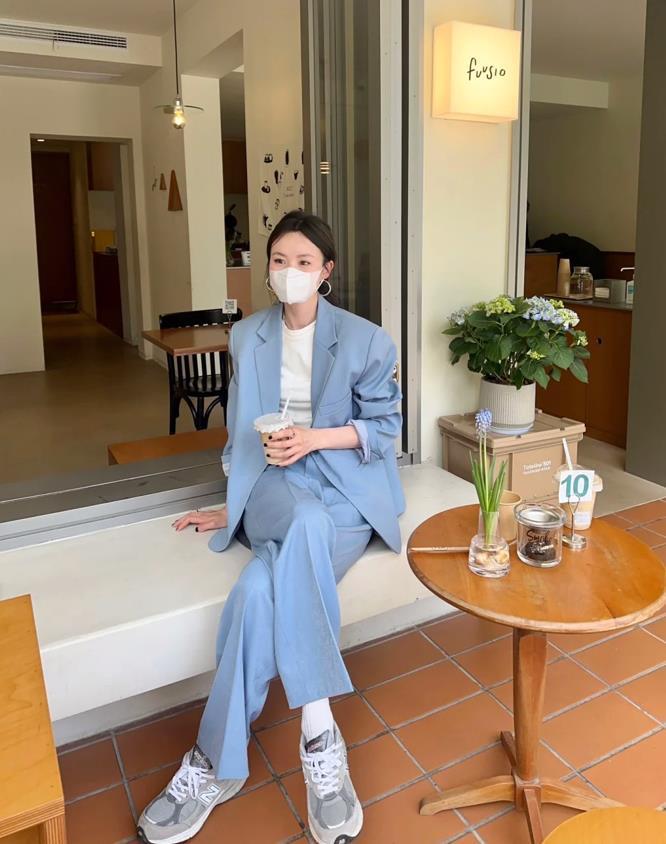 一整套的西裝服,對於懶人來說最合適了,出門趕時間的,也可以選擇來穿,配一雙運動鞋也非常好看。