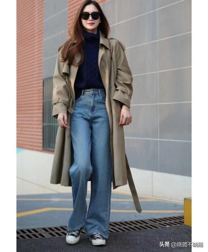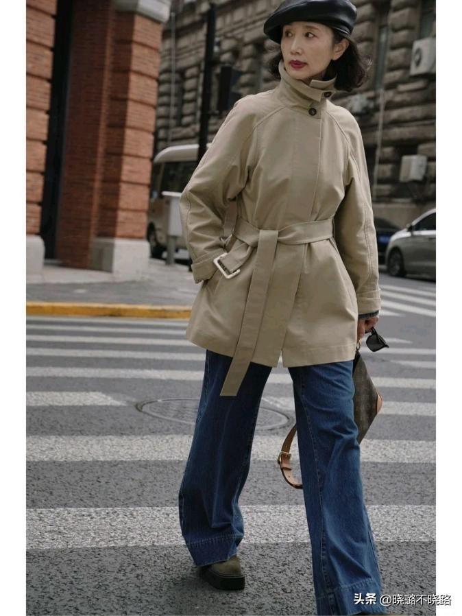 這樣的風衣搭配模板完全可以供人學習借鑑,短款風衣不壓身高,非常適合小個子女性。而淺色的配色,可以展現出獨特的時尚氣質,還能與膚色很好的融合在一起。搭配深藍色的牛仔褲,一方面是增加了活力和減齡感,另一方面與風衣的配色形成對比,可以展現對細節和顏色搭配的精緻處理。