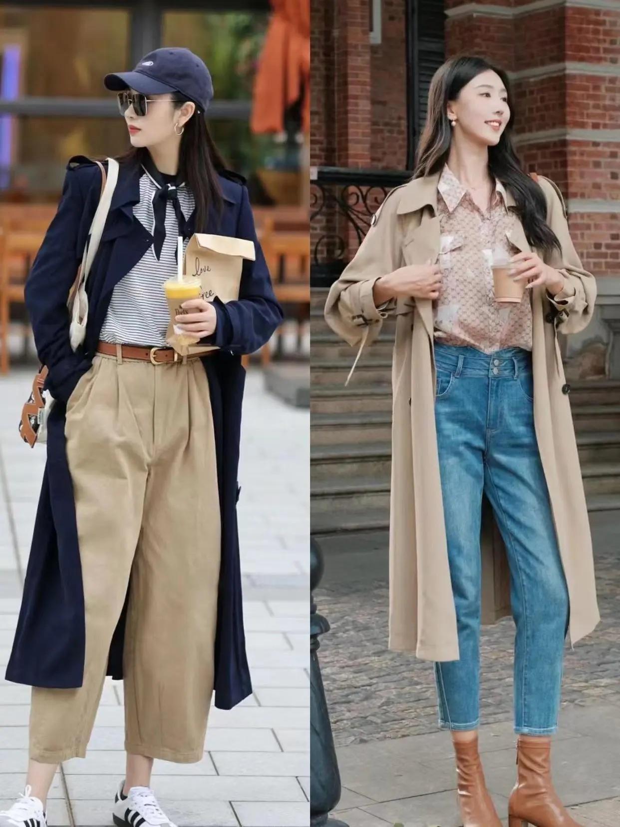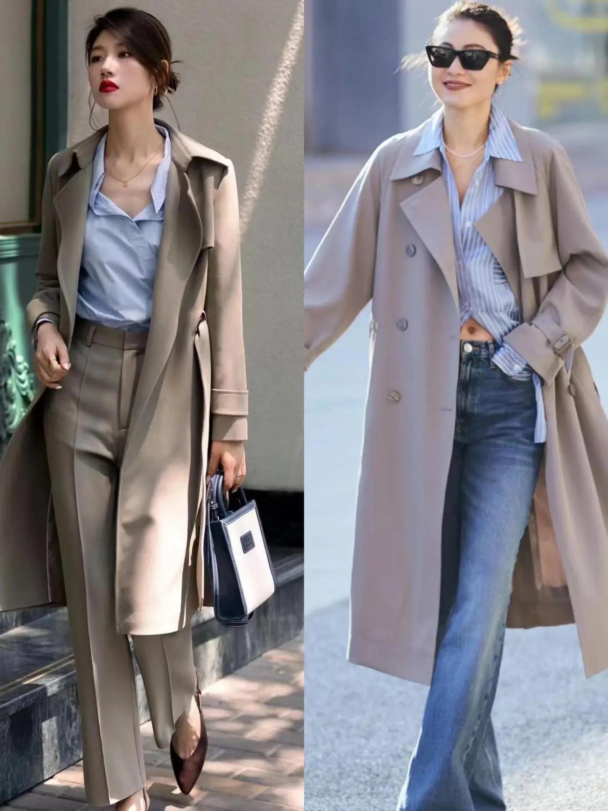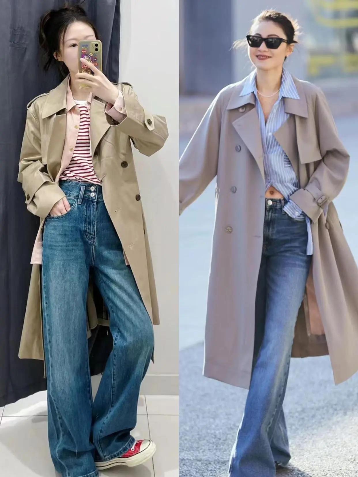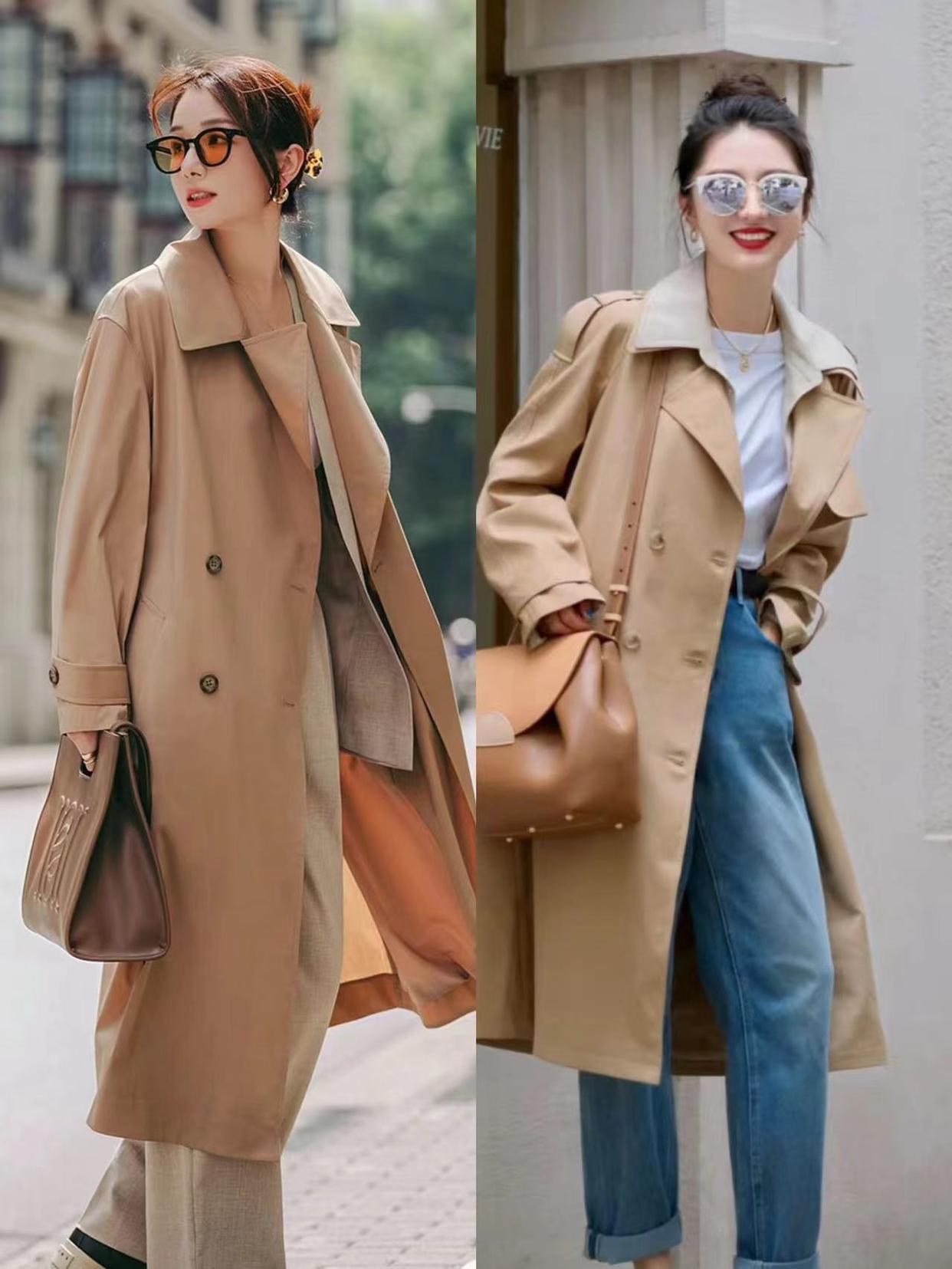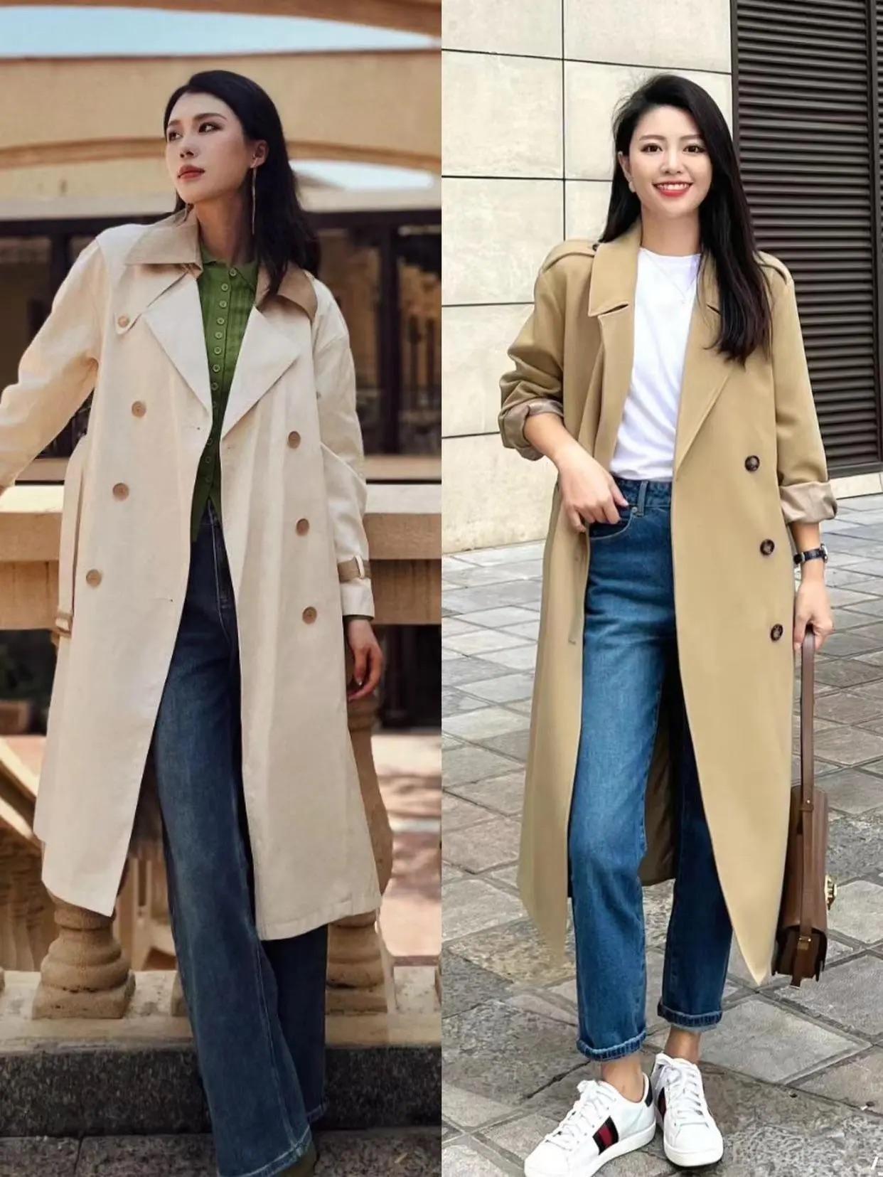 過膝長度的風衣,搭配比較輕薄的面料,更是自帶春季氛圍。輕薄面料的風衣,可以配卡其色、米白色、淺藍色、深藍色等比較耐看的色系。輕薄面料的風衣配九分牛仔褲,也更輕盈。