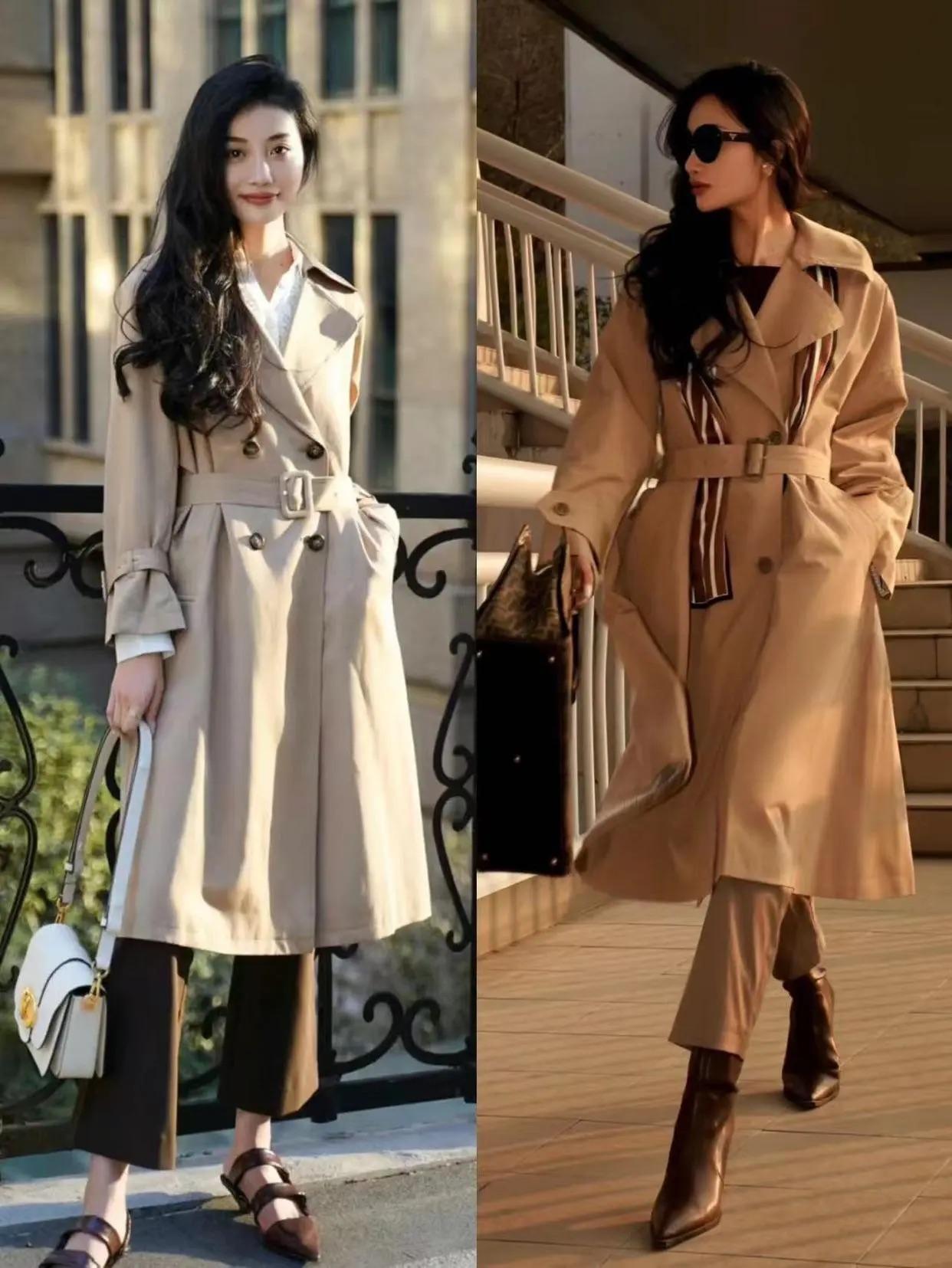 風衣+九分褲的搭配,也可以更加時髦顯貴呀。我們可以將層次分明的混搭,或者利落別緻的順色、以及高級感十足的腰帶、絲巾融入其中。