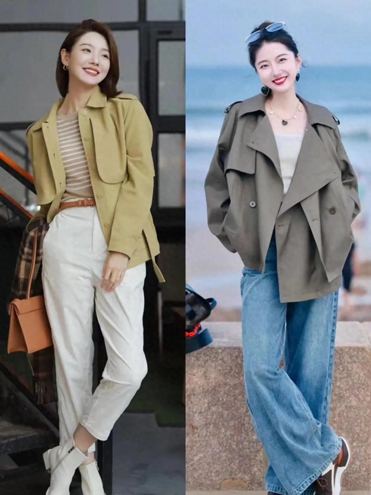 寬鬆舒適的風衣,可以選擇相對輕薄的面料。越是面料輕薄的風衣,越是符合春季的氛圍。小個子女生,可以選擇長度剛剛過膝的風衣,不要搭配到腳踝長度的風衣。