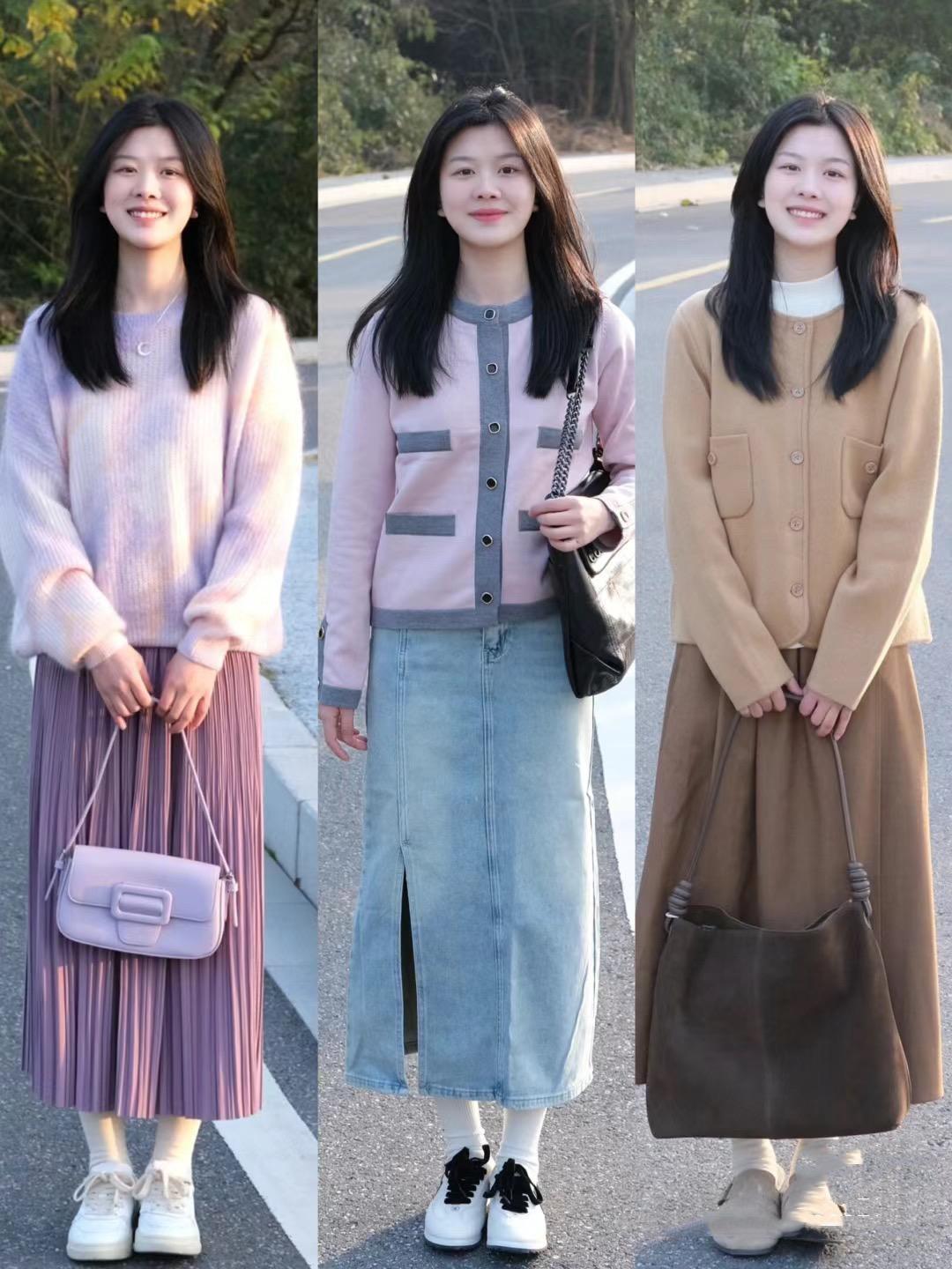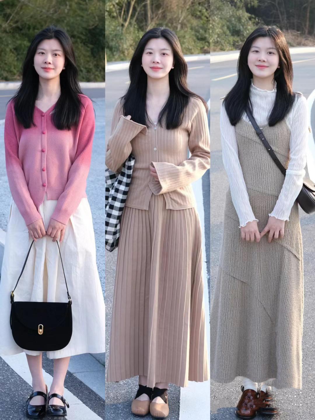 春天裏的針織衫,可以相對輕薄一些。搭配帶有微彈面料的款式,穿起來也更加溫柔嫺靜。比如針織開衫+針織半身裙的組合,就優雅舒適、甜美大方。