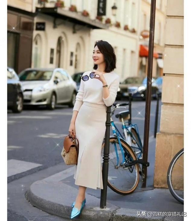 長裙的穿搭對於年齡的包容感會更強,而且我們推薦的是尖嘴鞋的組合,可以像圖中陳數這樣去穿搭,長裙的穿法更容易優化身材曲線感,拉長比例的同時也增加優雅溫和的一面。