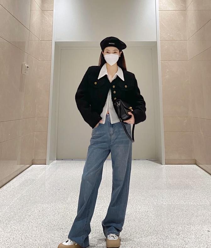 財閥千金私服既視感,春季很適合日常的穿搭,這一套無論是出遊還是上班通勤都合適。黑色的小短款,不僅百搭時髦,還能輕鬆打造出高挑感。