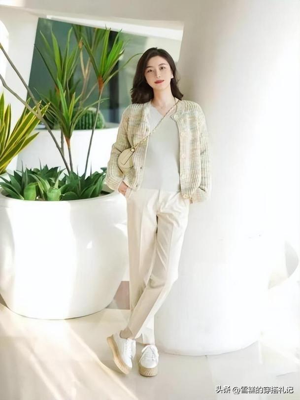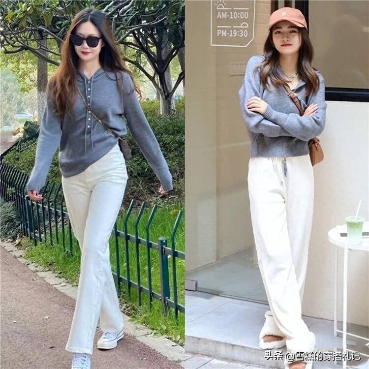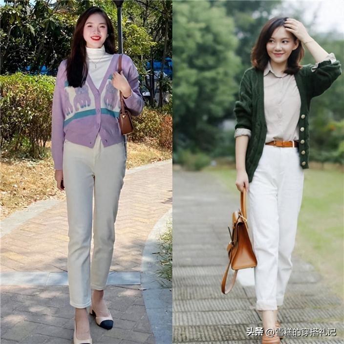 對於擁有纖細腰部的人來說,選擇修身設計的奶奶衫具有很大的優勢。,既展現了腰部曲線,增加腰部纖細感的作用,同時也讓整體穿搭更顯瘦效果。而選擇材質比較硬朗的懶人褲,對於梨型身材的女性特別友好,利落的線條可以很好的掩蓋臀部和大腿的缺點。