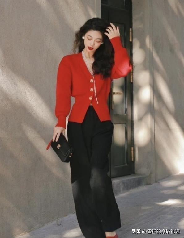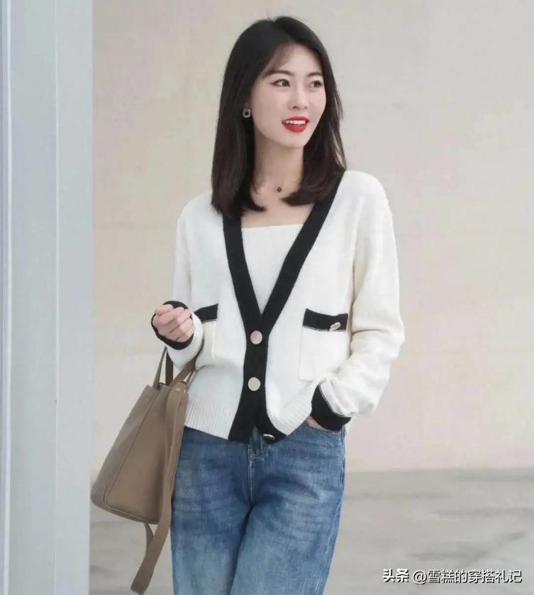 V領的奶奶衫適當露出脖子的皮膚不僅能營造出一絲性感的氣息,還能修飾脖頸線條。而彩色的選擇可以瞬間增加整體造型的活力和動感,也輕鬆顯示了個人的時尚品味和獨特氣質。可以結合一定的設計元素,爲整體造型增添趣味和時尚感,也讓個人風格更具魅力與個性。