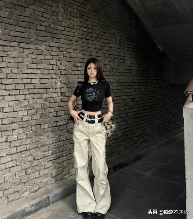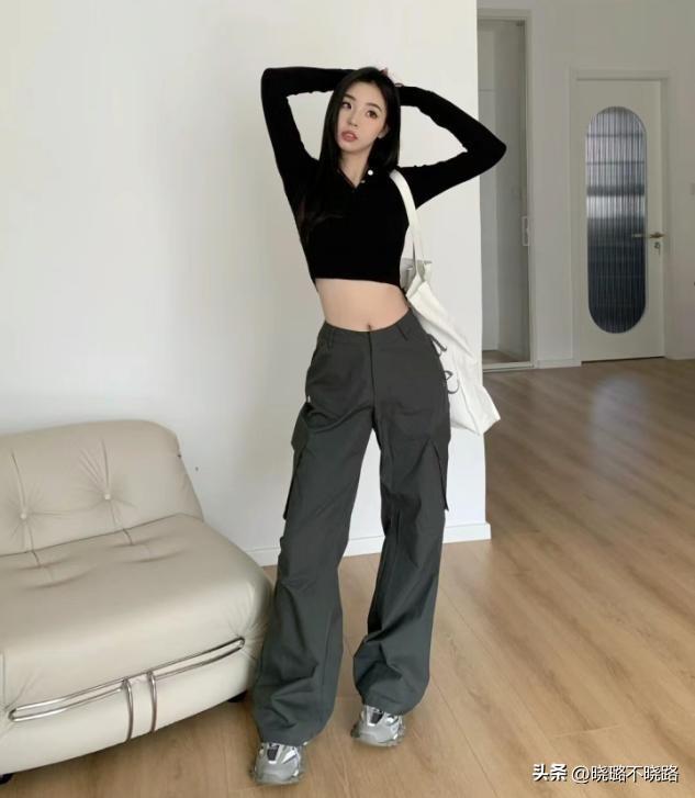 工裝褲的大輪廓也有着一些輪廓的細節劃分,比如直筒褲的款型就能夠輕鬆的矯正腿型,很適合蘿蔔腿或者O型腿的女生,個子偏小的女生穿這種褲子可以省去腳踝的鬆緊線條,直接當一條直筒褲裝穿搭,身材延長感特別明顯。