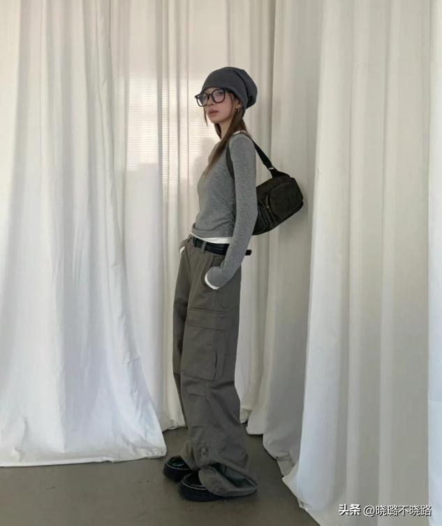 爲了組合漂亮的打底衫,修身款式的上衣更需要合身的闊腿褲來作爲輪廓對比,灰色和棕色的工裝褲看起來不出挑,可以完全成爲造型當中的基礎配色,所以我們可以大膽的去穿着,組合皮鞋或者是小高跟都別有一番風味。