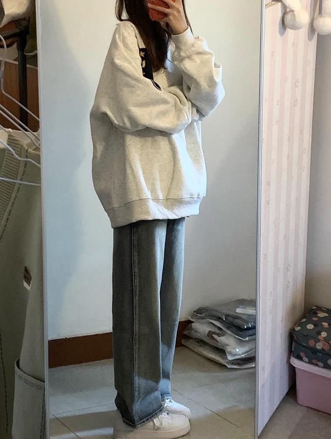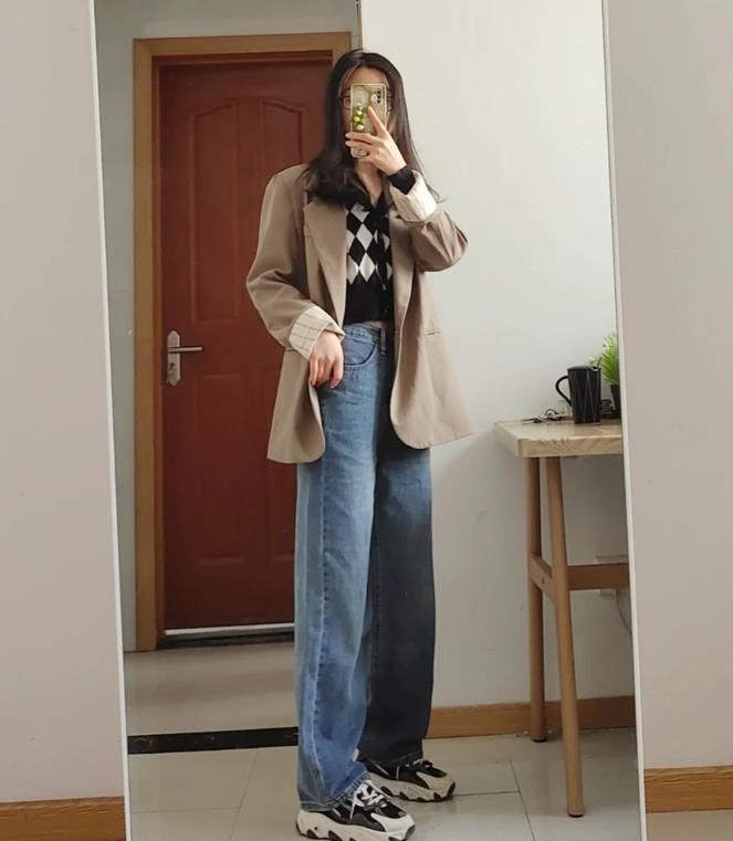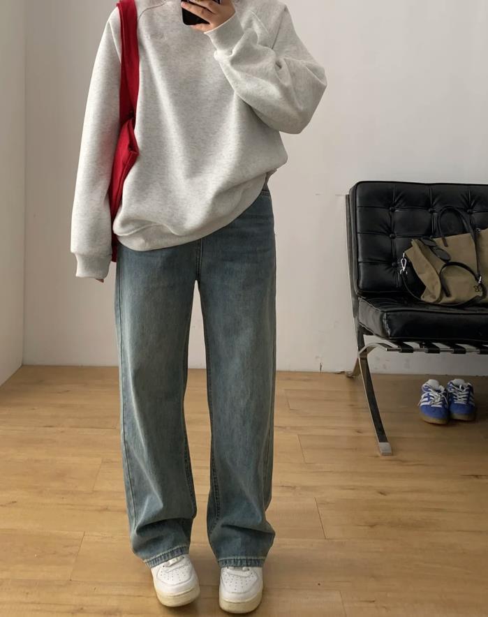 喜歡這種復古藍的牛仔闊腿褲,穿起來可顯瘦了,不會太寬鬆,但也沒有過於修身,穿起來剛剛好。褲子的版型可是超好的,能很好遮掩腿部的肉肉,春天搭配衛衣和運動鞋,休閒舒適極了。