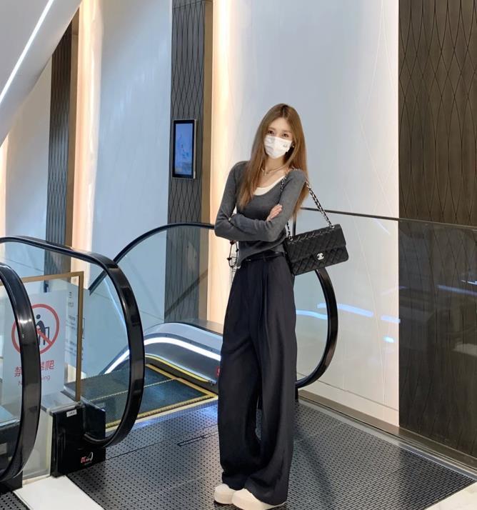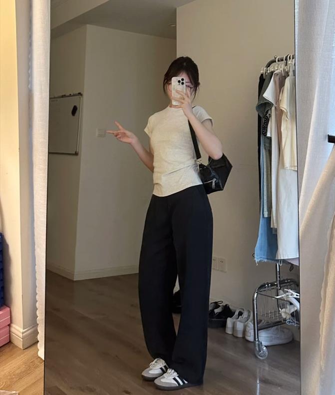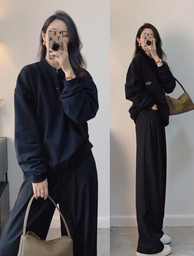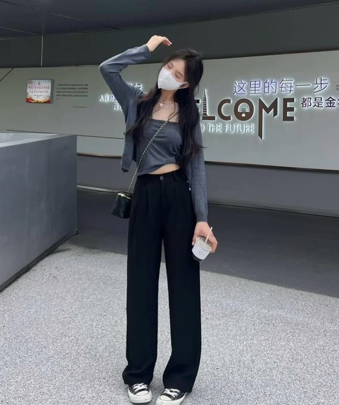 真的完全拒絕不了黑色西裝闊腿褲,穿起來實在是太太太顯瘦了,微胖的女生也能輕鬆hold住。搭配短上衣,這樣就形成了上短+下長的組合,顯腿長無敵了。
