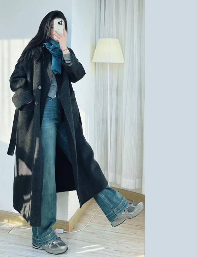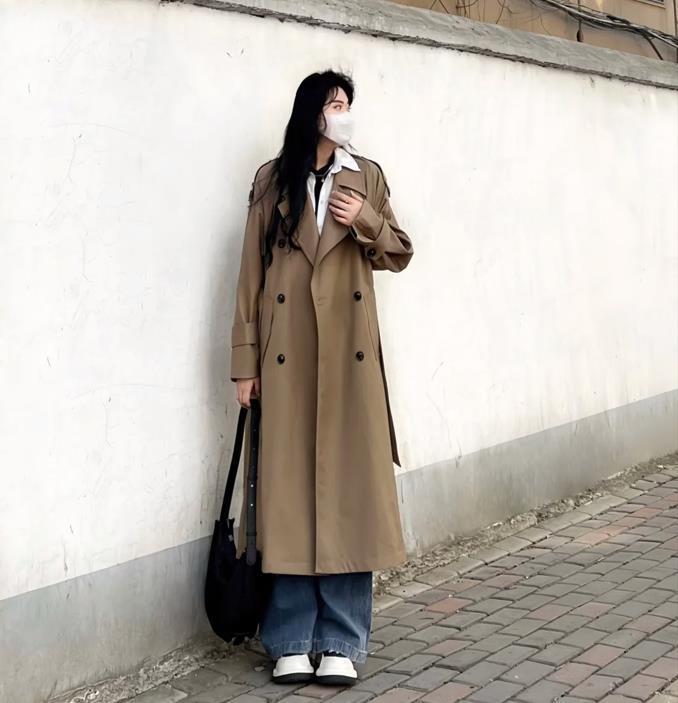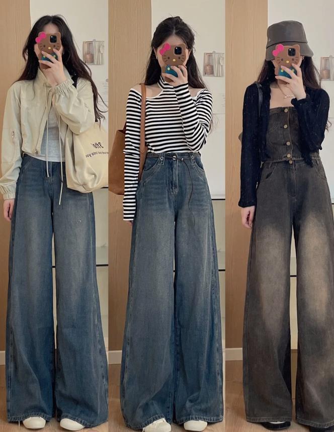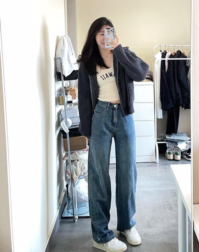 這種高腰牛仔闊腿拖地褲,試問哪個女生能拒絕呢?質感和垂墜感都是非常不錯的呢,寬鬆的版型,無論你是什麼身材都可以駕馭。搭配運動鞋就是很耐看時髦。