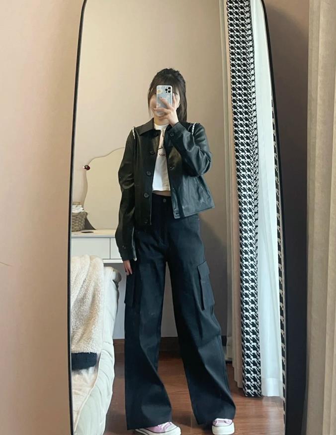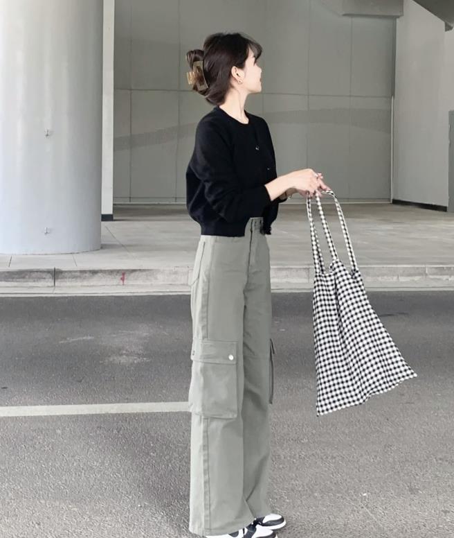闊腿褲的款式那麼多,除了牛仔和西裝款的之外,這種工裝款式的你也可以嘗試下,自帶酷颯感的,想要打造出帥帥造型的姐妹,就不能錯過了。