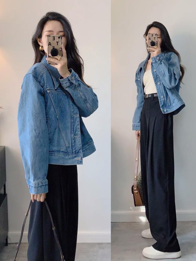 闊腿褲的款式千千萬,但我還是更鐘情於牛仔闊腿褲,一年四季都可以穿,也非常百搭,顏色上就不多說了,是復古的牛仔色。