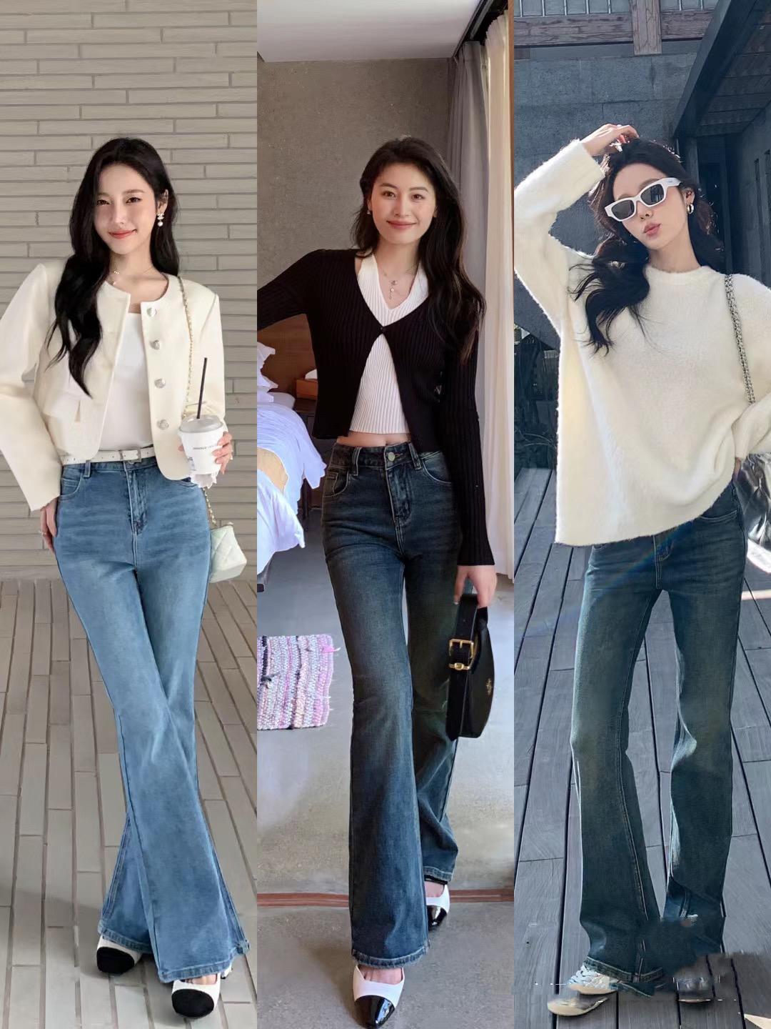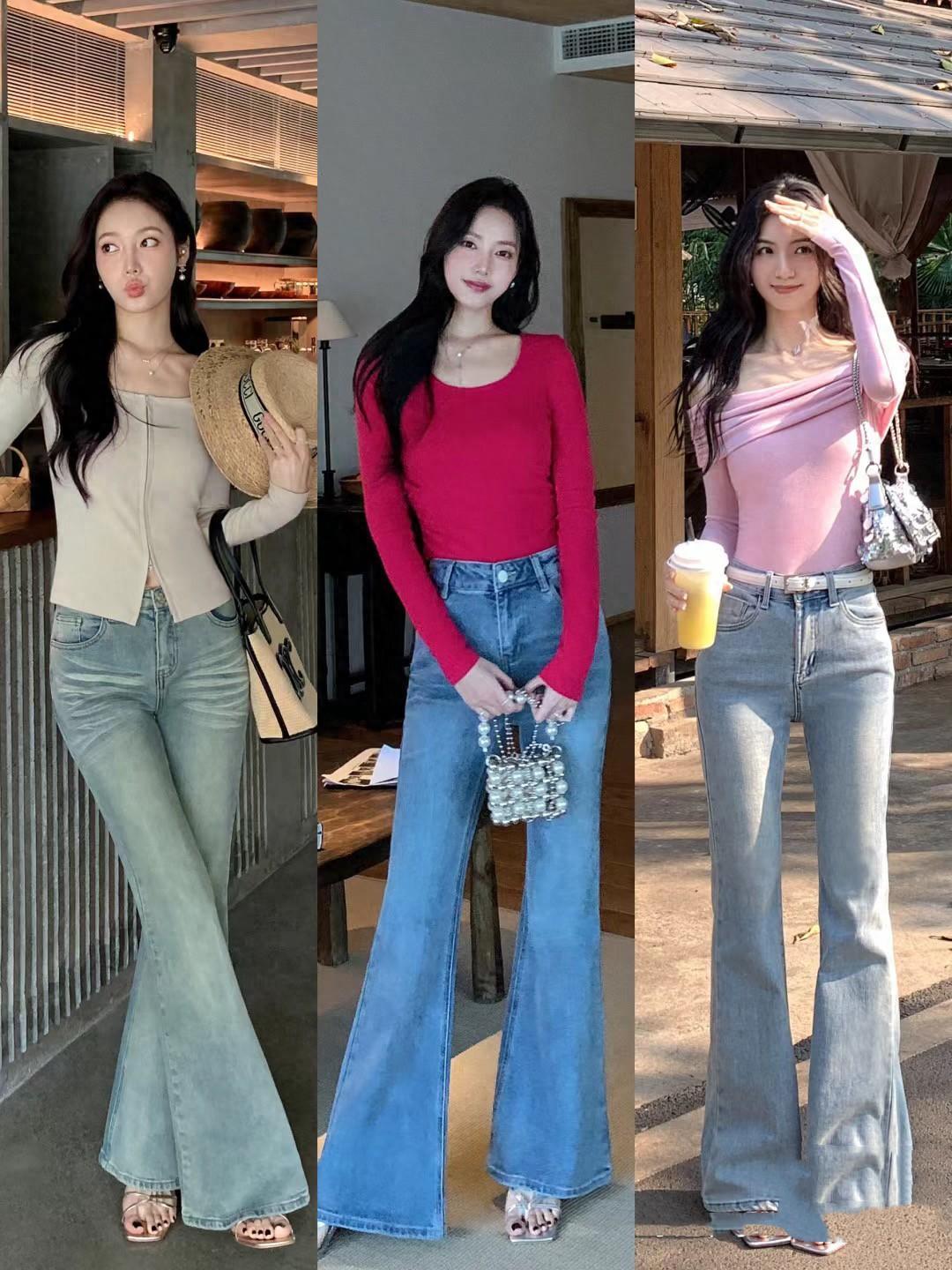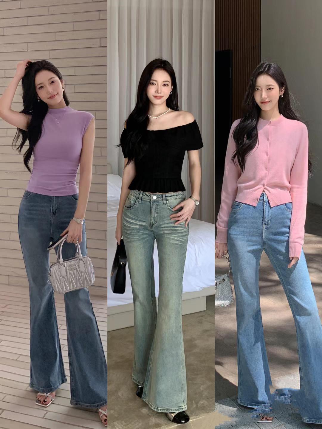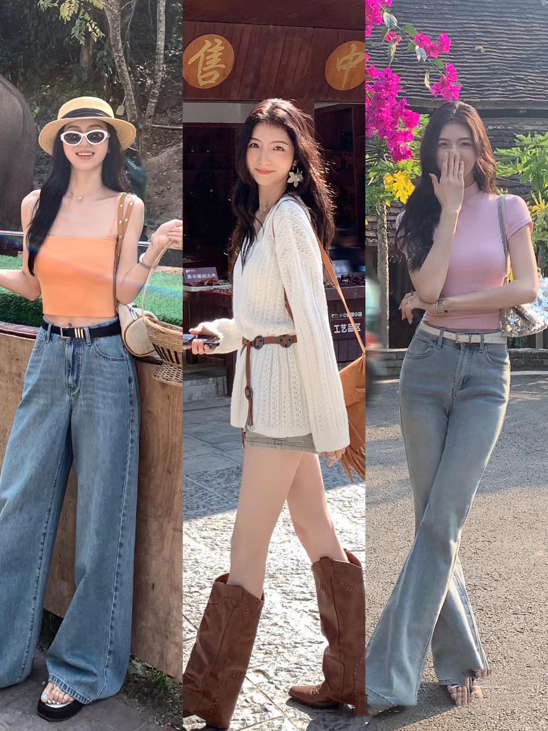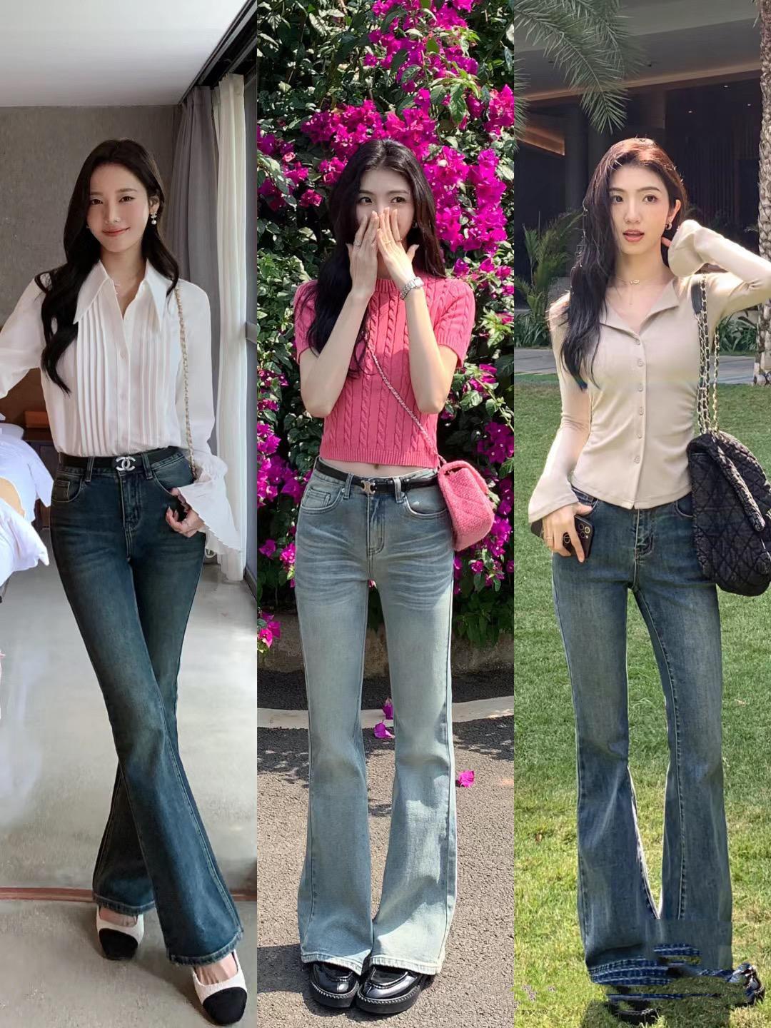春天裏的高腰闊腿褲、或者高腰微喇褲,我們都可以選擇稍微淺一點的色系。淺色系的高腰闊腿褲,或者高腰微喇褲,穿出來更加時髦清新。