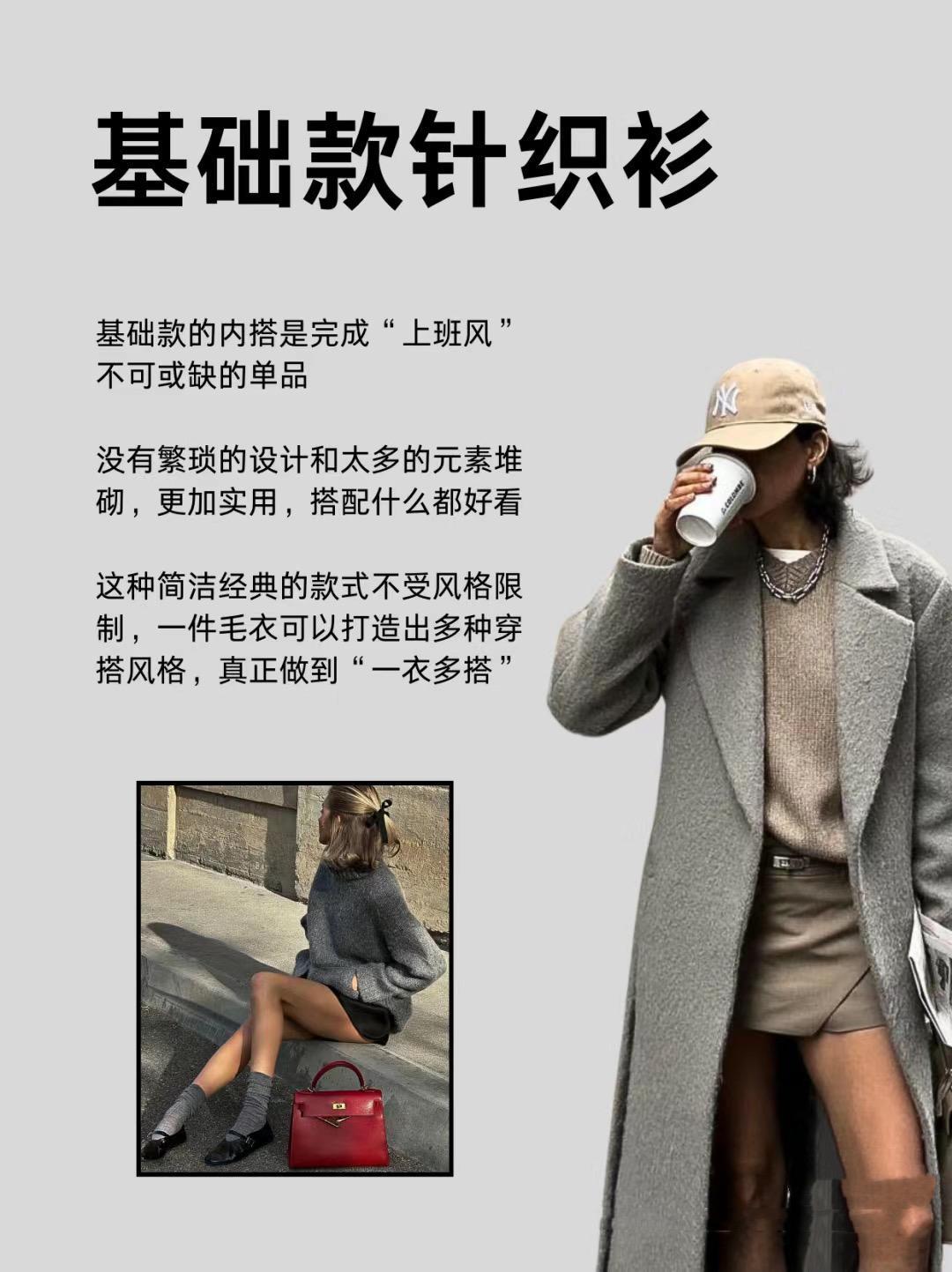 越是款式簡約的針織衫,在搭配上越是不受限制,可以給我們的穿搭帶來無限的可能。一件純色基礎款打底衫,真正可以做到一衣多搭,來快速盤活我們的衣櫥。