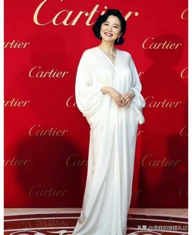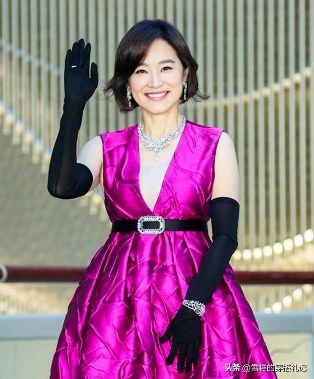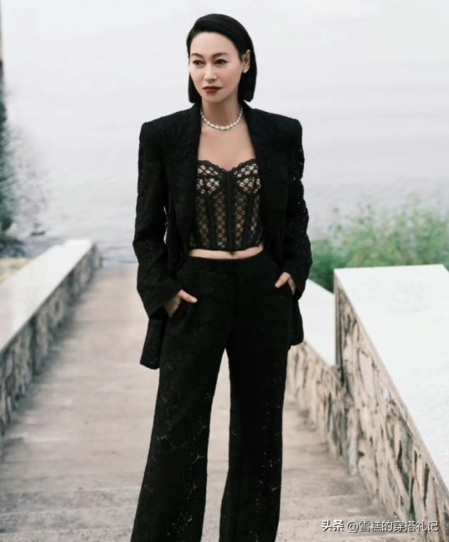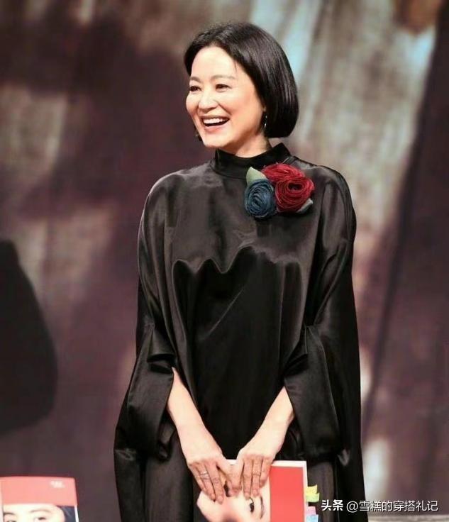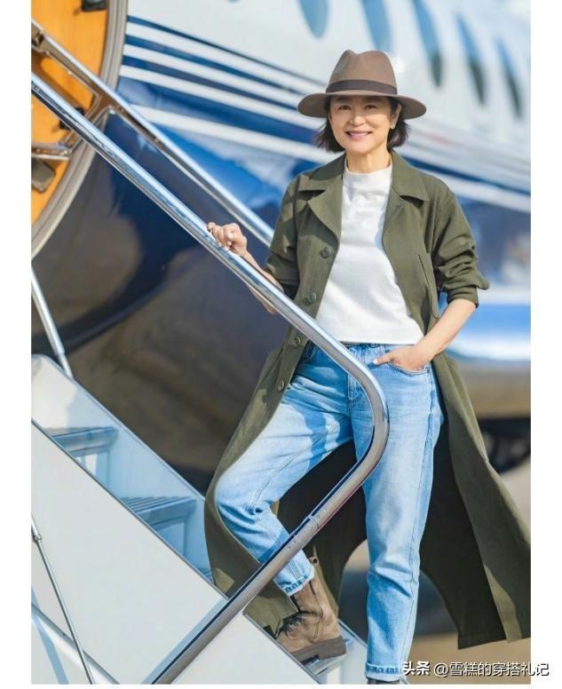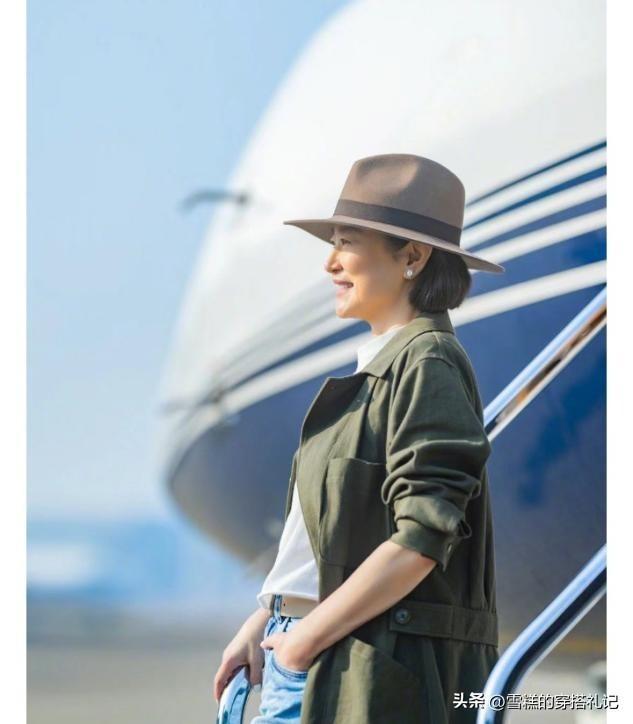 中分設計的水母頭很有優雅的優勢,畢竟這是髮尾放鬆頭頂服帖的短款髮型,特別適合像林青霞這樣去匹配一款寬帽檐的帽子,髮尾的大波浪捲款設計,不會讓中年女性看起來顯老或者是邋遢,造型的洋氣感很足。