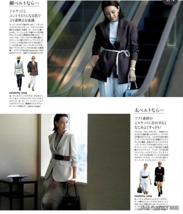 有一部分女人擔心盲目的穿裙配腰帶容易暴露水桶腰,那麼大家可以選擇一件稍微寬鬆一些的外套,將臀部與腰腹的肉肉隱藏起來,然後在外套外部疊加一條腰帶,既可以分割比例,增加層次感,不是也不容易暴露不足。注意腰帶越細存在感越弱,對於小肚子的隱藏效果越好。