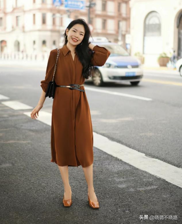 如果你想要比同齡人穿的更加年輕洋氣,那麼真的建議你試試裙繫腰帶配低跟鞋,看起來普普通通的款式,但能夠很好的製造時尚感。