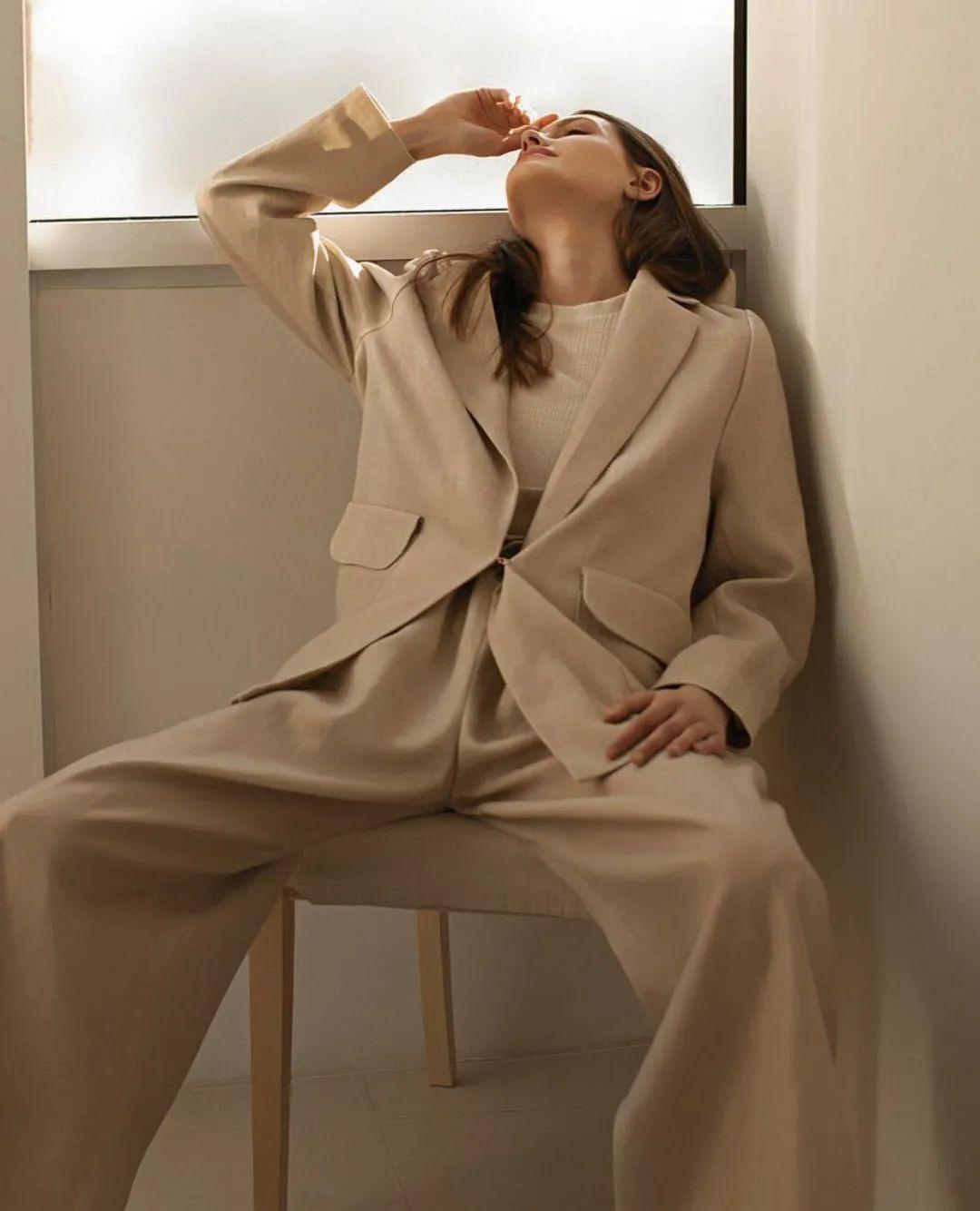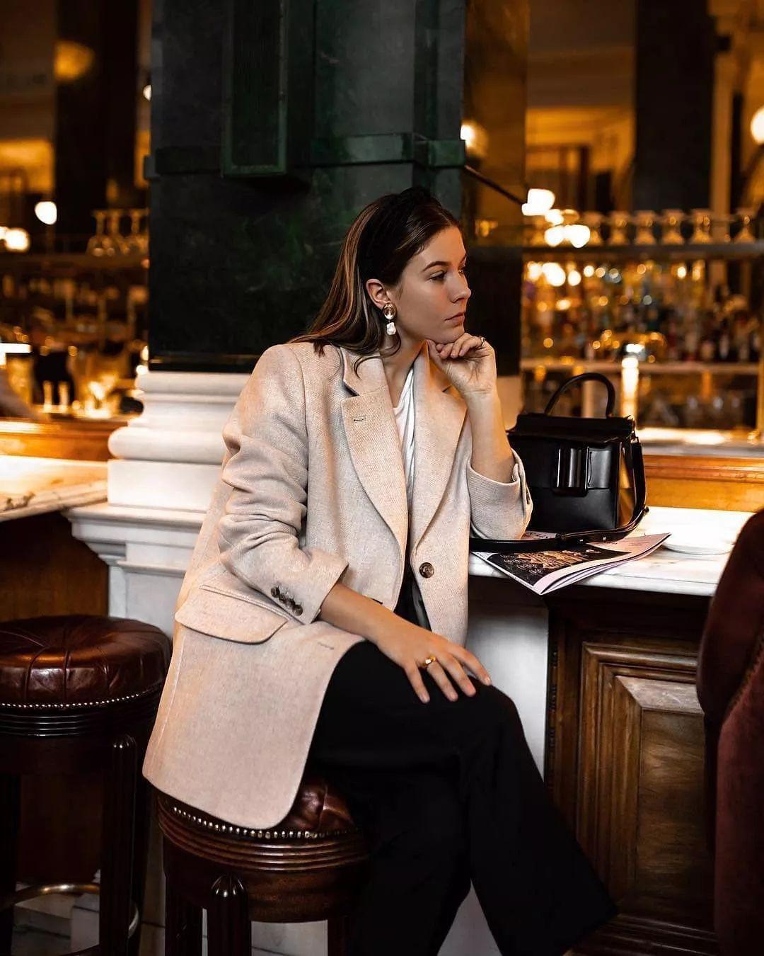 在職場通勤的姐妹,西裝外套是少不了的,不想在搭配上考慮太多的話,可以直接選西裝套裝,大一號版型的西裝外套,有種別具一格的時髦範。