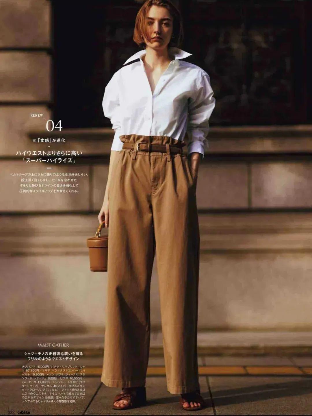 襯衫與西裝褲的搭配,顯得比較知性也不失氣場,有種大女人風的既視感,當你選擇的西裝褲比較長時,記得要將腰線提高起來,從而營造出大長腿和高挑感。