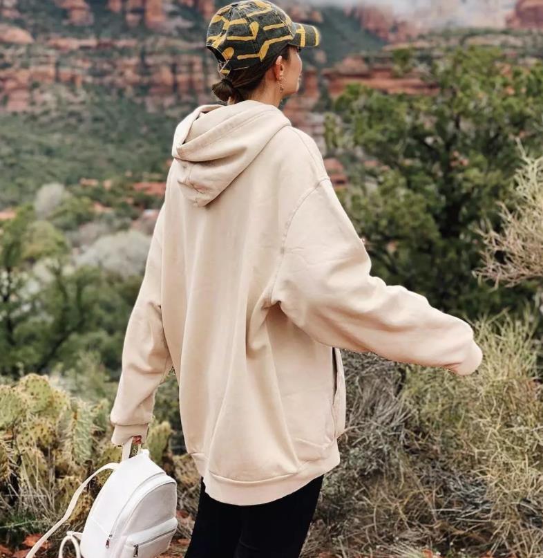 在春季,寒意依舊,雖然溫度沒有冬季那般低,但出門還是要選擇一件長袖來穿的,就好比衛衣。在選擇衛衣時,版型選“大一號”吧,這樣才能穿得更時髦,也能很好隱藏起身上的贅肉。
