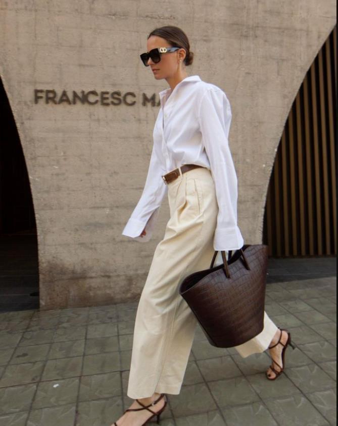 襯衫也是春天最好的選擇,這種白色簡約基礎款,只要在版型上突破,那麼也能穿得很時髦。寬鬆的版型,既有對身材的包容,又可以打造出你想要的慵懶。