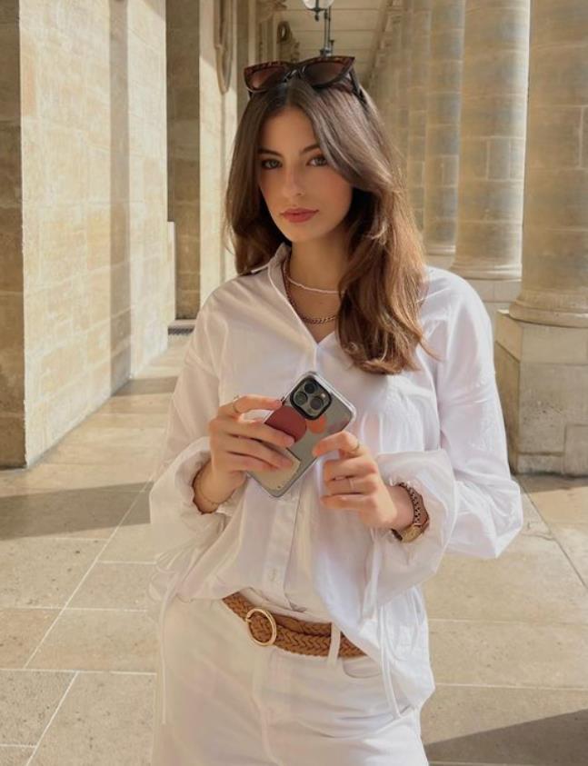 大一號的白襯衫,穿起來就是沒有修身款那般顯呆板正式,反而多了一種名爲鬆弛的隨性感,寬鬆的版型,藏肉顯瘦是非常不錯的。與同色的牛仔褲相配,更爲時髦與高級了。