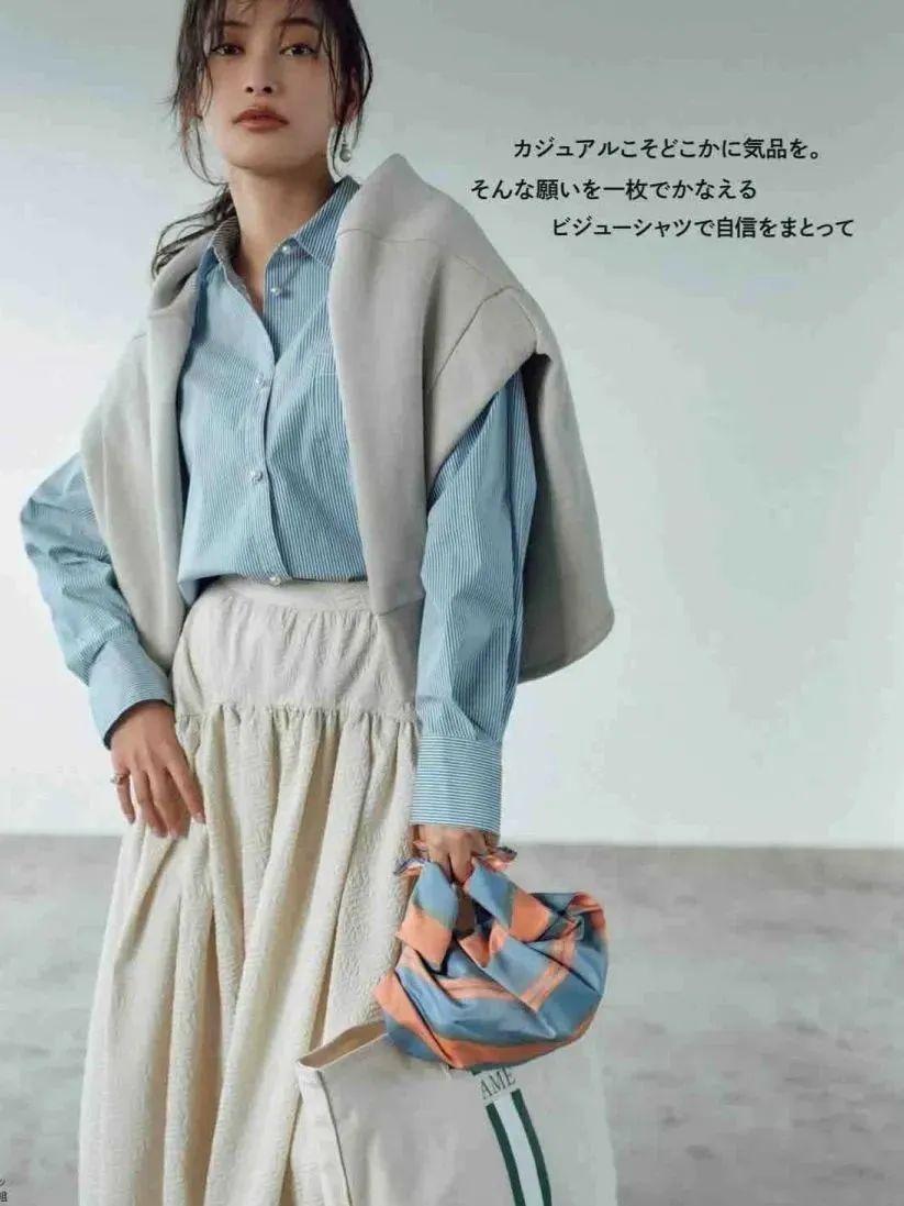 對於腿部比例不好看的女人,可以選擇配一條長裙,大一號襯衫+半身長裙,輕鬆修飾你的腿型,讓你氣質與時髦並存。