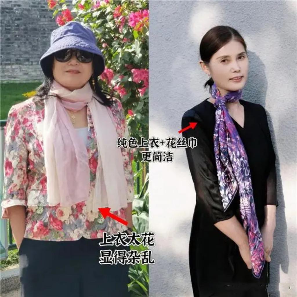 爲什麼你的絲巾顯土氣?除了色彩沒有選對、花色的搭配也很重要。不僅僅是印花的款式,更是印花與底色的對比。