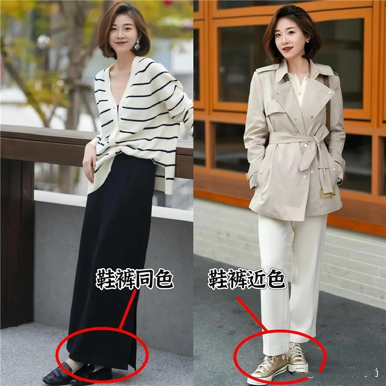 同色系的搭配、或者鄰近色的搭配,都是一種更加溫婉顯氣質的選擇。比如我們穿一條黑色闊腿褲,可以搭配黑色樂福鞋,鞋褲同色的組合經典高級。