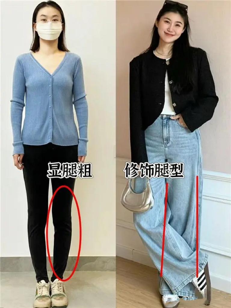 如果腿型不好的女生,春天也不要穿緊身的褲子。緊身褲很容易暴露腿部不完美的線條,我們可以選擇相對寬鬆的闊腿褲,包容性更強、也更自然的修飾腿型。