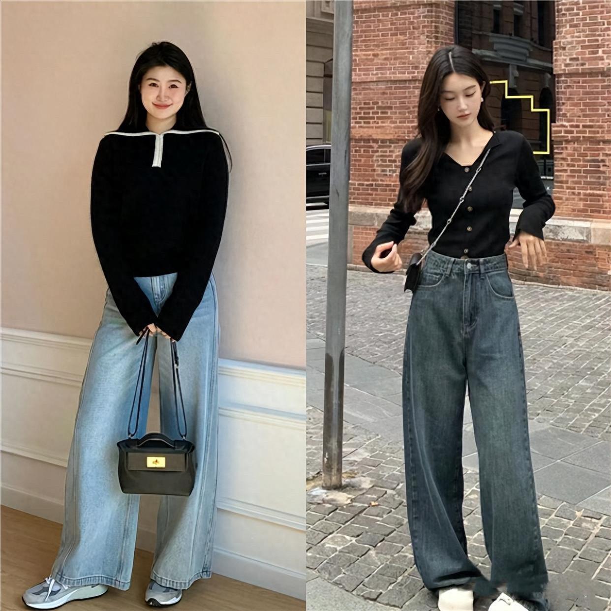 我們可以選擇基礎色的闊腿褲,比如黑白灰、牛仔色的闊腿褲,都更加百搭一些。尤其是經典的黑白色闊腿褲,穿起來利落大方、一點不挑人。