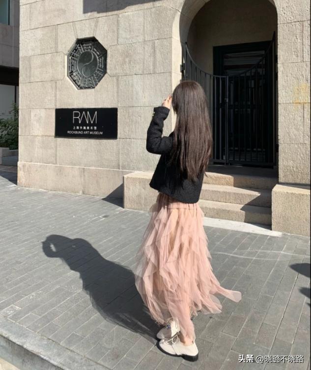 比較有分量的毛呢齊踝裙,適合氣溫偏低的時候,而且這種裙裝的面料支撐感很強,表面不會形成明顯的褶皺感,所以更推薦大家選擇黑色或者棕色這一類暗色系作爲點綴,弱化大輪廓裙裝的橫向線條,組合粗花呢款式的小香風外套,復古氣質很強。