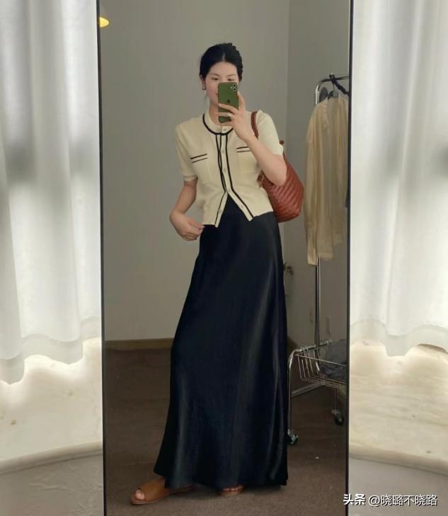 和諧色彩的穿搭,再也沒有比黑白兩色更加實用性的選擇了,黑色是完全不挑場合的萬能色彩,穿在齊踝裙上,正式感和穩重感都比較強,可以成爲你的應急套裝顏色選擇。