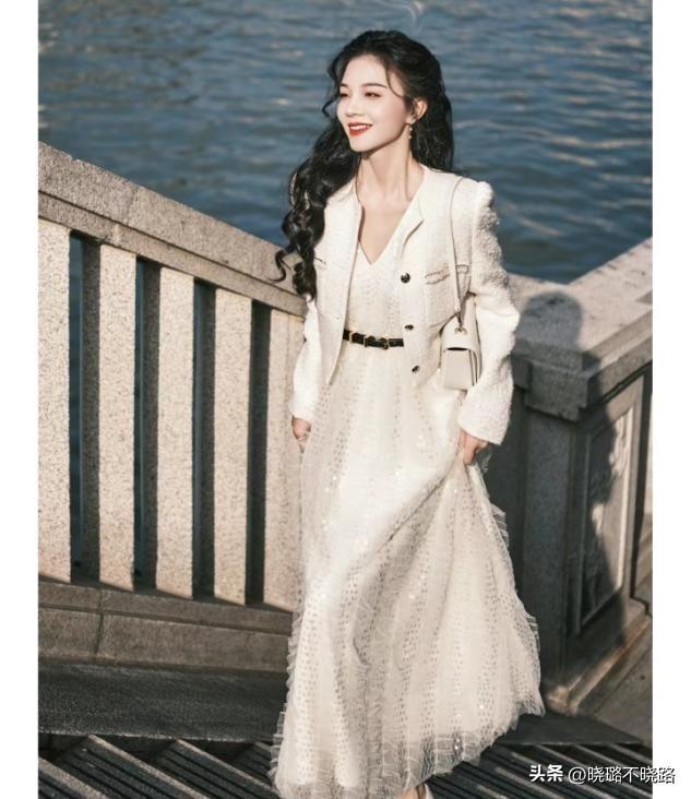 裙裝面料的垂感設計,讓你的造型線條更加優美,緊身或者是立肩款式的小香風外套,平衡了身材的寬窄輪廓,穿闊擺裙裝也會比較協調。