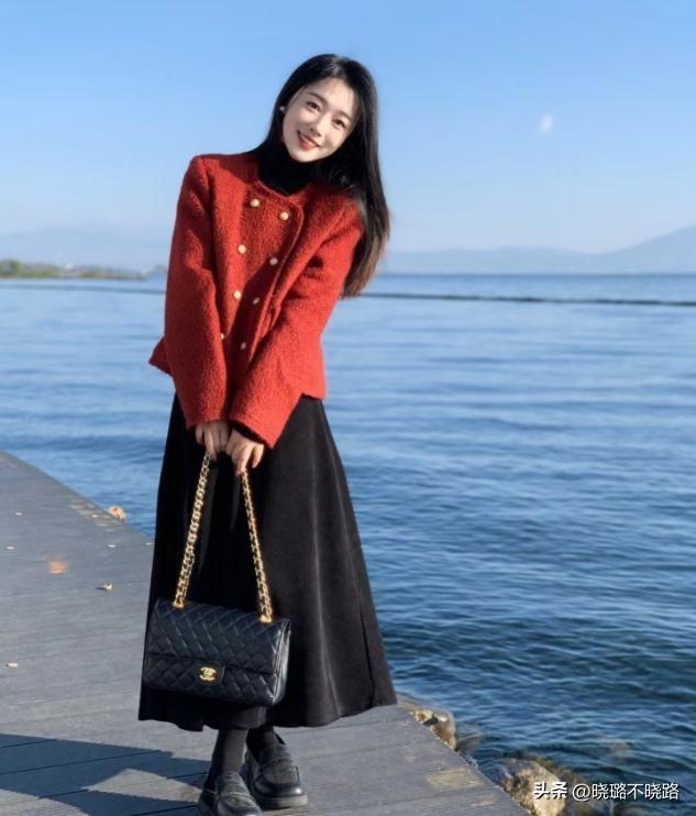 馬甲款式的小香風外套很適合疊穿,內搭一件打底的長袖,組合紅色系的齊踝裙,你的疊穿細節可以成爲視覺亮點。