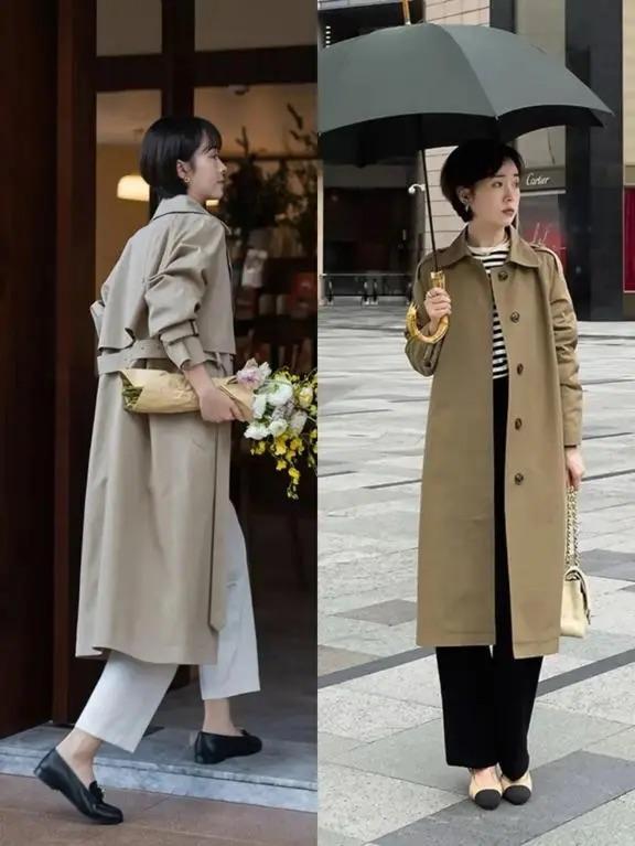 比如一件簡約的風衣,可以配打底衫、直筒褲來穿着。整體都是H型的剪裁,可以表現出一種利落挺拔的美,簡化自己的穿搭,也是告別油膩感、凸顯氣質的前提。