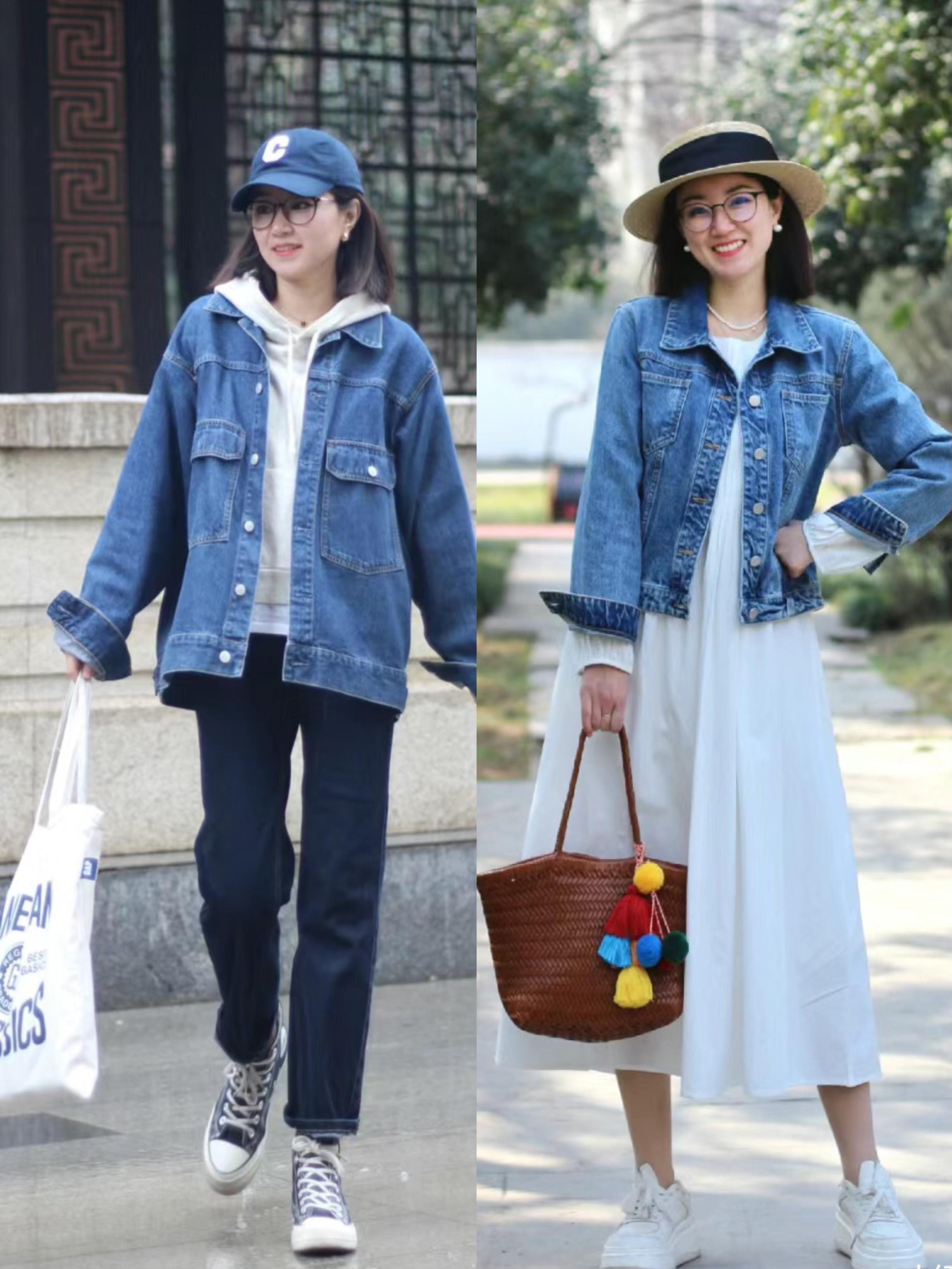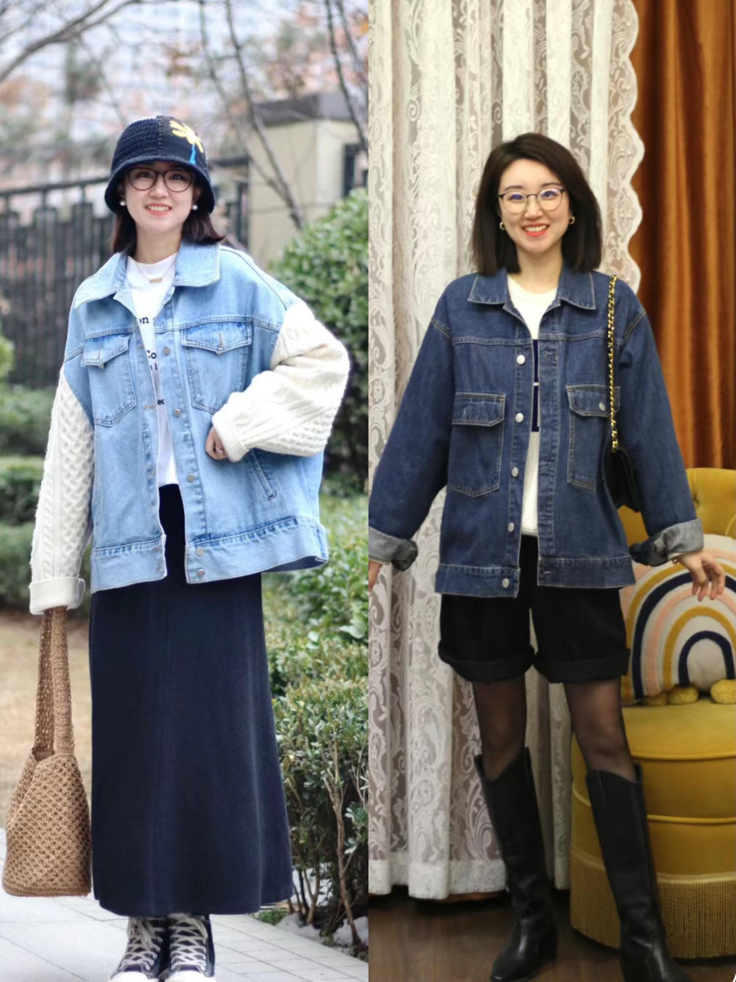 40+的小個子女性,想要顯高又減齡的穿搭,也可以選擇寬鬆的牛仔外套來凹造型,自然玩轉下衣失蹤,可以塑造出更加挺拔的身材線條,顯得雙腿比例更加修長。
