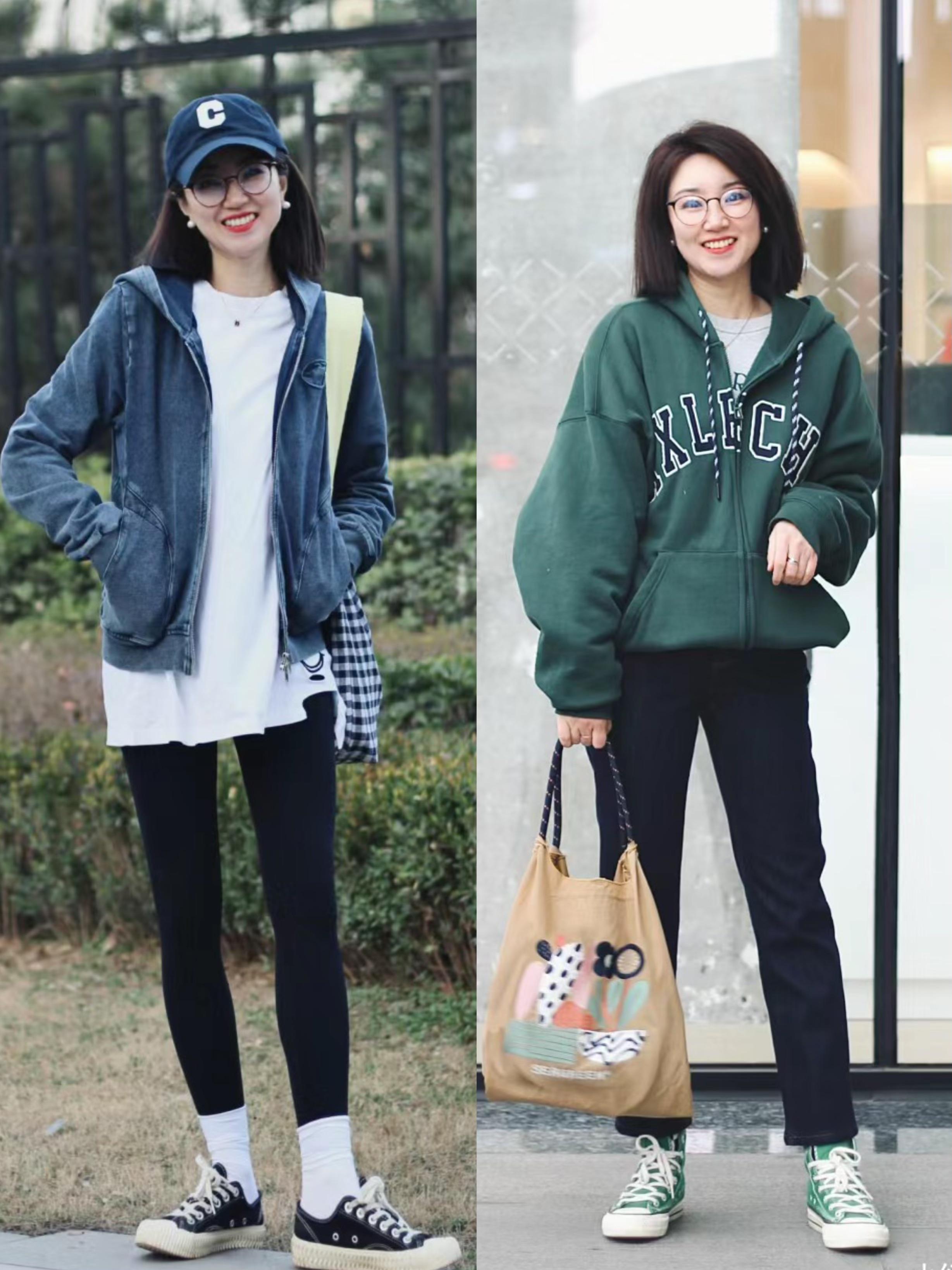 想要塑造休閒街頭風穿搭,我們可以嘗試隨性又減齡的穿着方式。比如用連帽衛衣來疊搭白色T恤,給人一種清爽又明媚的美,配黑色的直筒褲、也可以更自然的修飾腿型。