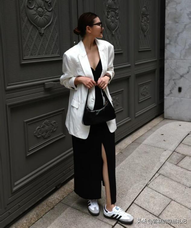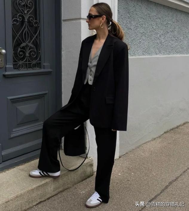 時尚的鞋子單品可以讓你駕馭更新鮮的視覺效果,尖嘴款型設計的運動鞋,我們穿過老爹鞋,但是德訓鞋的尖嘴輪廓要顯得更加鈍一點,那麼設計出來的足尖空間就更大,穿搭不容易擠腳,腿型的拉扯效果也比你想象的真的要更優越。