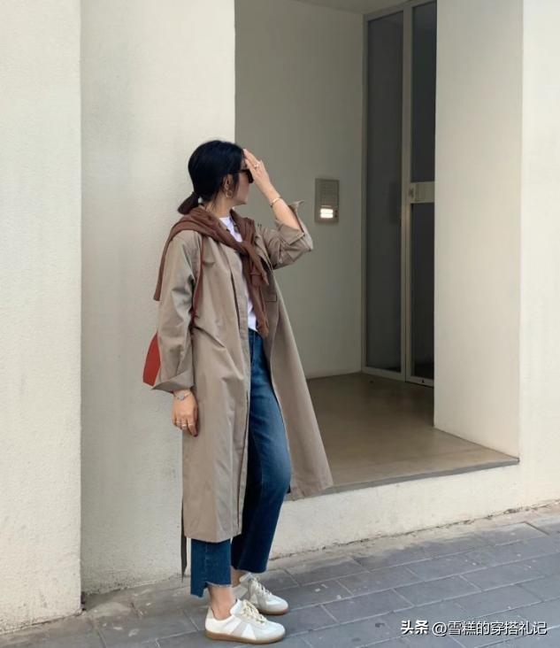 百搭的造型選擇少不了對於腿型線條的維護,尤其是早春的穿衣,一定要在腳踝的部分露出一小節膚色,穿德訓鞋的時候就可以匹配九分褲或者是鎖腳褲,低幫款式的鞋子更方便我們去露腳踝。