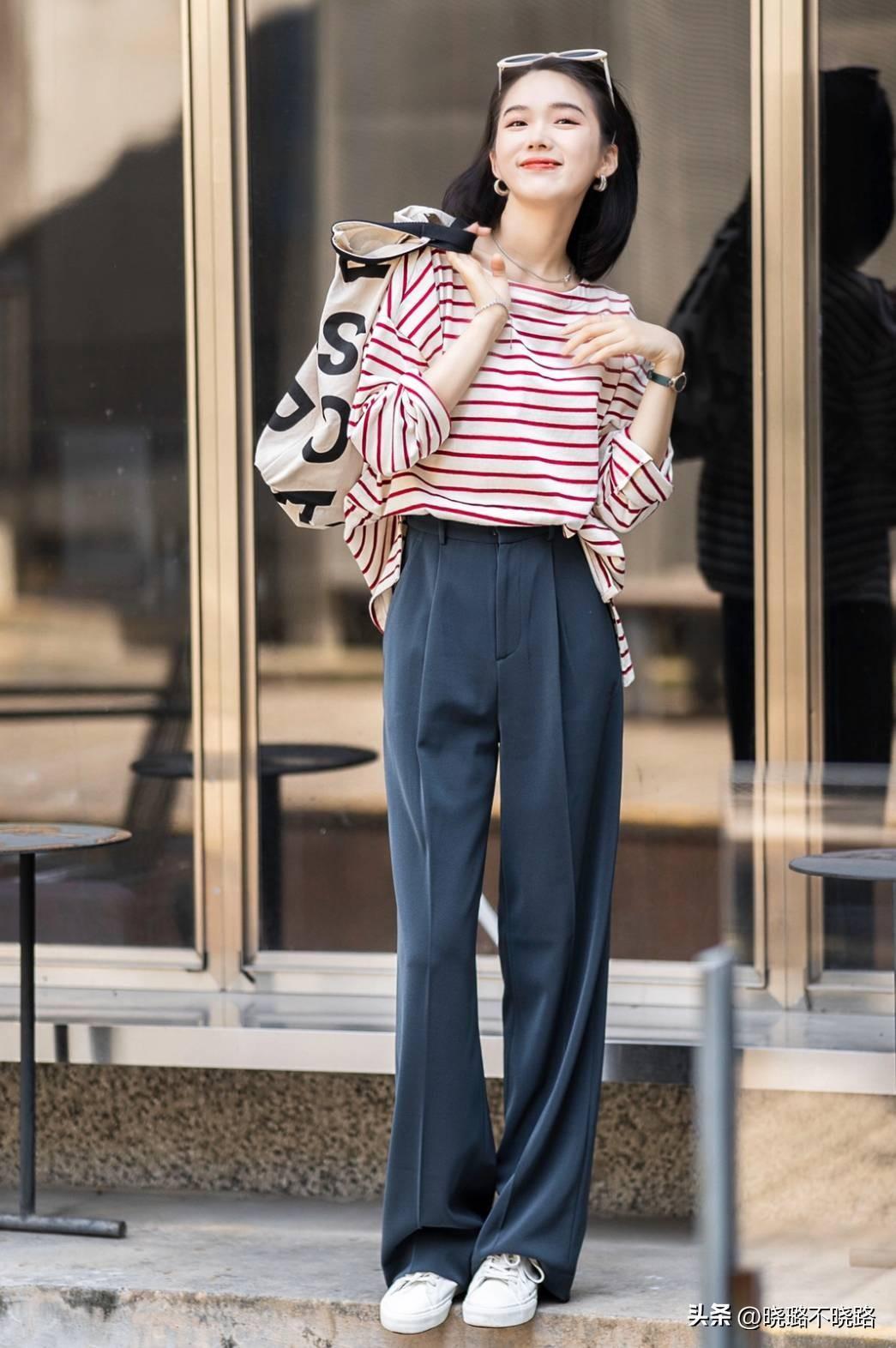 條紋衫非常適合搭配西裝褲,兩種風格截然不同的單品組合在一起,既能玩轉混搭風,又能打破沉悶感,並且二者之間還有很好的對比效果。