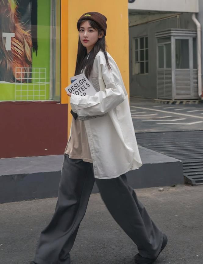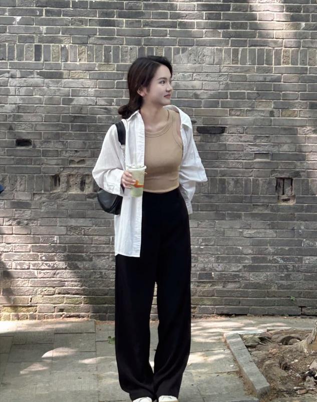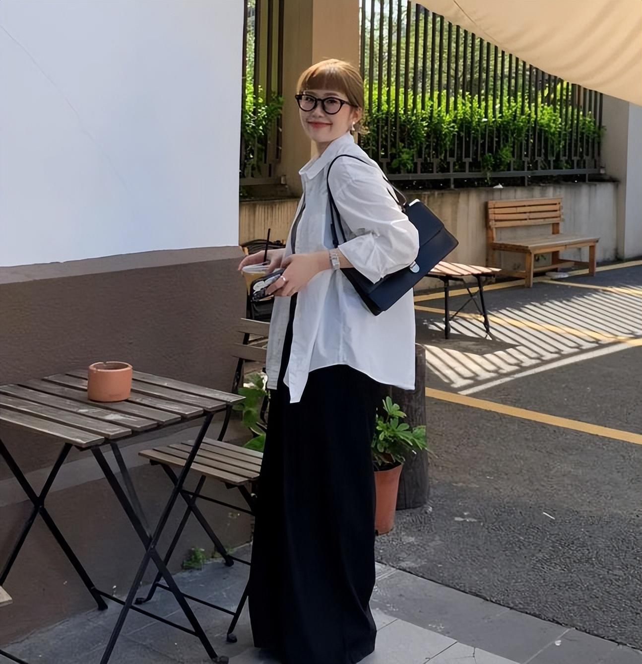 真的超喜歡白襯衫帶來的那種乾淨和隨意感,版型一定要選擇寬鬆些的,這樣穿起來才能更好修飾身材,藏肉顯瘦。底下搭配一條黑色闊腿褲,簡單時髦又高級,整體看起來就很隨性。