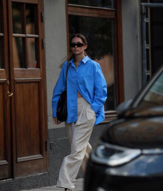 襯衫+闊腿褲的時髦穿法
