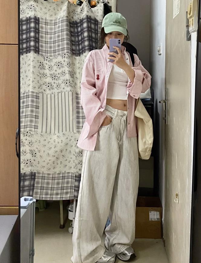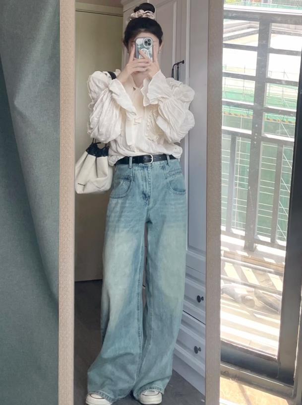 如果說基礎簡約款的襯衫是製造出大氣與高級的關鍵,那麼這種花邊襯衫就能讓你穿出甜美和溫柔。整件款式看着就很韓,搭配闊腿牛仔褲,腳下配帆布鞋或者是運動鞋,休閒又舒適。