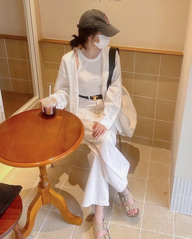 鬆弛感的穿搭今年是真的很火,春夏季節這樣穿遮肉顯瘦又舒服,基礎款白襯衫,既可以當做外套穿,也能直接單穿,結合背心來穿,真的很好看。