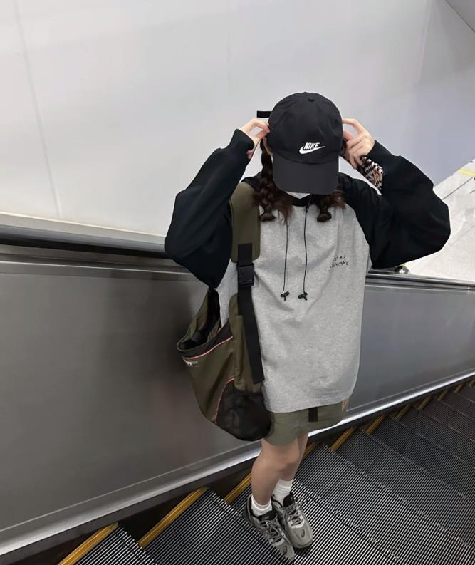 黑白拼色衛衣,比起純色就是多了個性與潮流,寬大的版型,是我喜歡和追求的,打造鬆弛隨性的效果非它莫屬。與半身短裙相配,上長下短,上大下小,這些都是顯瘦和顯高挑的關鍵。