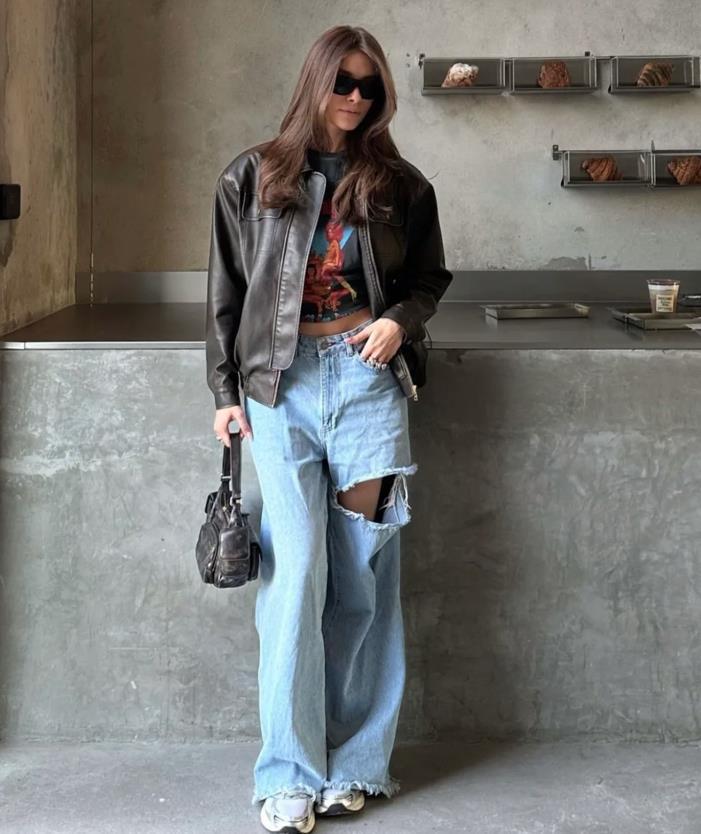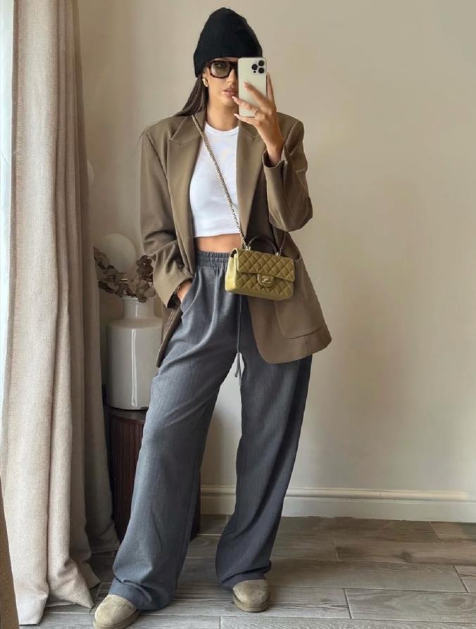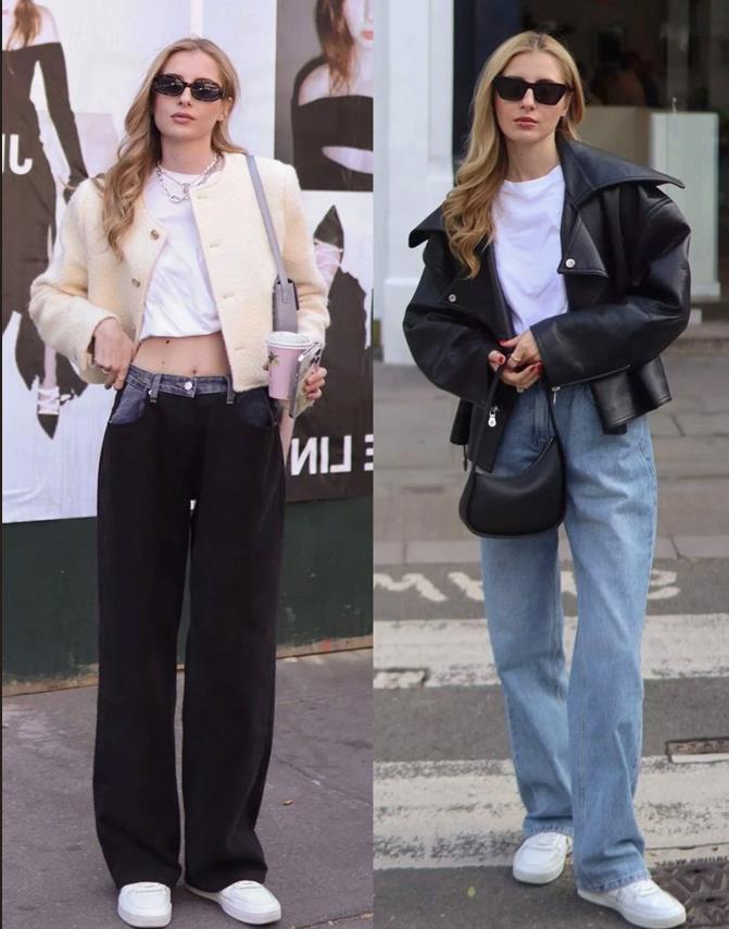 上緊下松的組合,顯高又好看,鬆弛感氛圍感都輕鬆拿捏,梨形身材的女生也可以試試看。